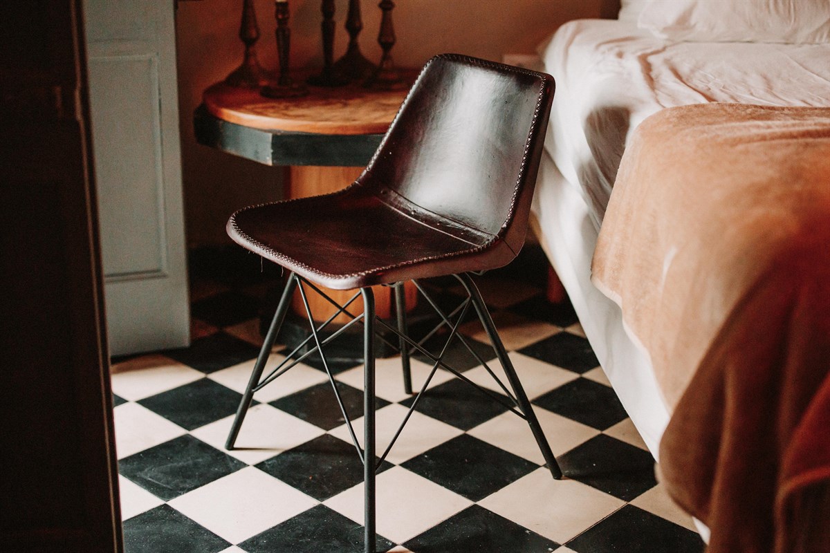 Like a more sophisticated version of the unforgettable DSW chair by designers Ray and Charles Eames. This is Camelot, which shares with the iconic piece its sculptural and casual shapes, but is dressed in leather and steel instead of plastic and wood. When it comes to industrial-style furniture, it is impossible not to fall in love with its unmistakable look and dark brown upholstery.