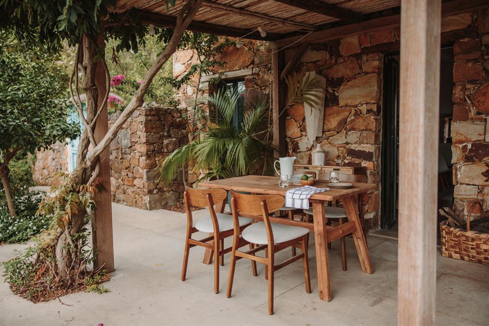 If you are also looking for a different point in the choice of handcrafted furniture for your dining area, you can choose two Bayona chairs, and a bench that is aesthetically similar, as is the case of the Belgium bench, made like the Bayona chair, in laurel wood and palm fiber seat.