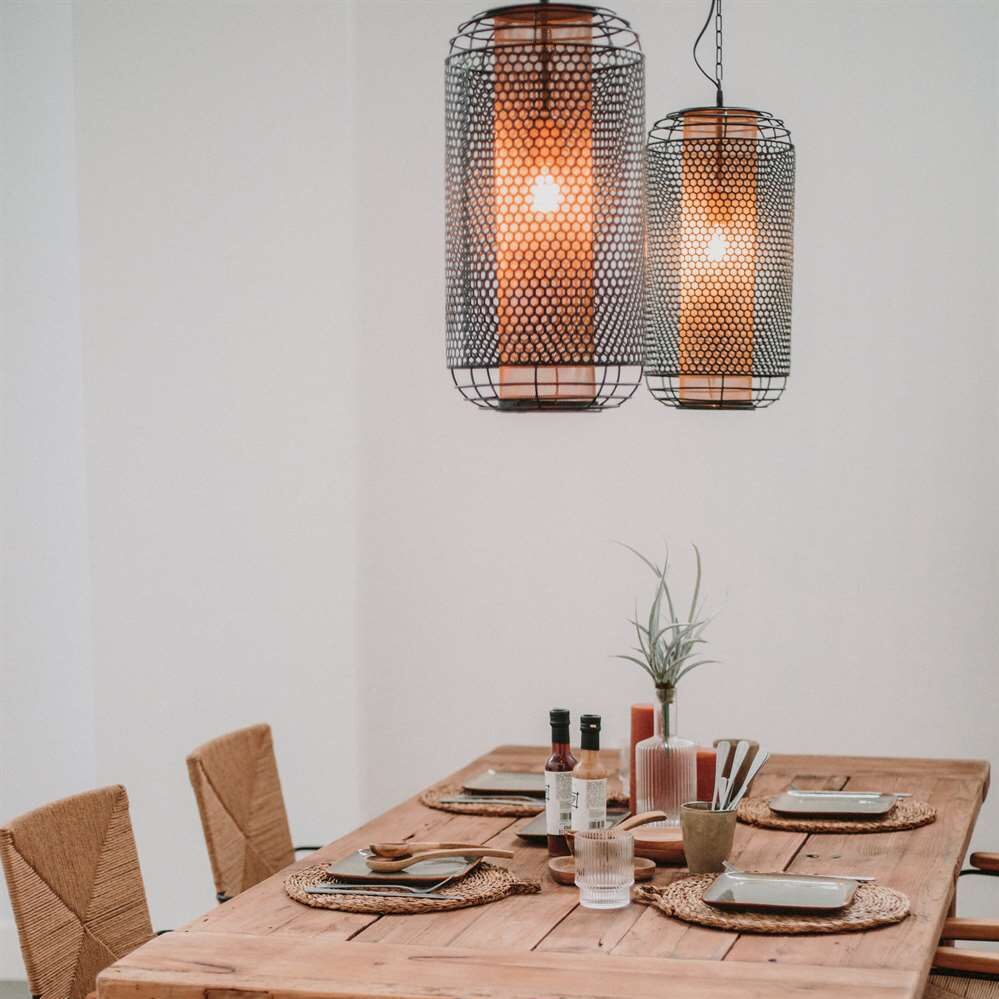 Do you want an original and poetic living room? This suspension is made for you. Thanks to its steel slat structure, it reminds of bird cages and diffuses light throughout the room, while leaving shadows and shapes on the walls. A real moment of softness and poetry. Its modern and elegant look makes this suspension a multipurpose object that can be installed both in a bedroom and in a living room.