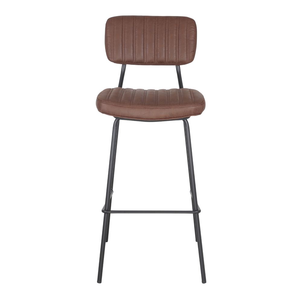 In addition, the steel frame offers excellent stability and durability, while the leather-like upholstery is easy to clean, making it a practical choice for frequently used environments. With its ergonomic design, the padded backrest and seat ensure additional comfort. All in all, the Adams high stool combines the best of industrial design with the comfort and sophistication of modern materials.