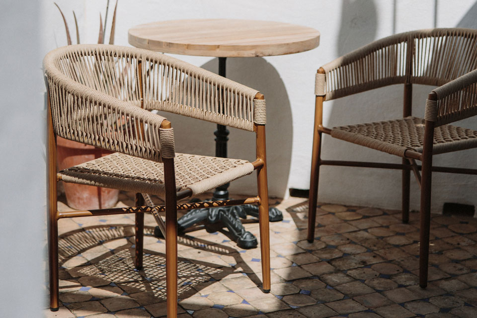 And we pair it with the Kalak outdoor table, creating a very flattering set for your terrace.