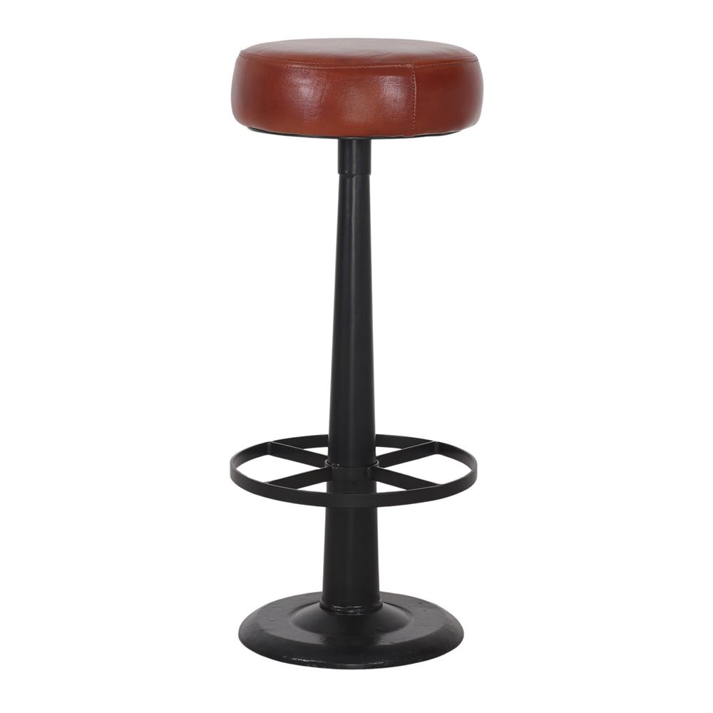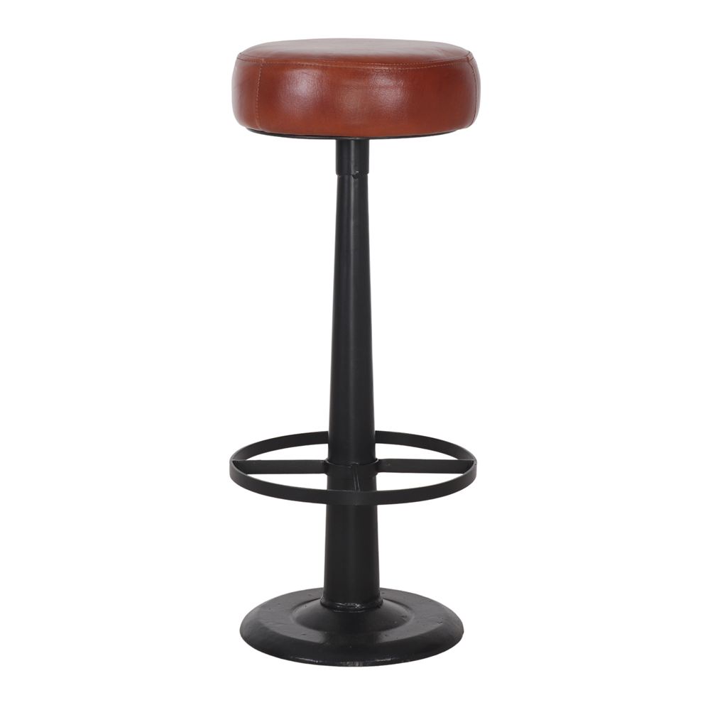Alexis High stool Industrial / Vintage style. Steel frame with powder paint finishing, seat upholstered in leather.
