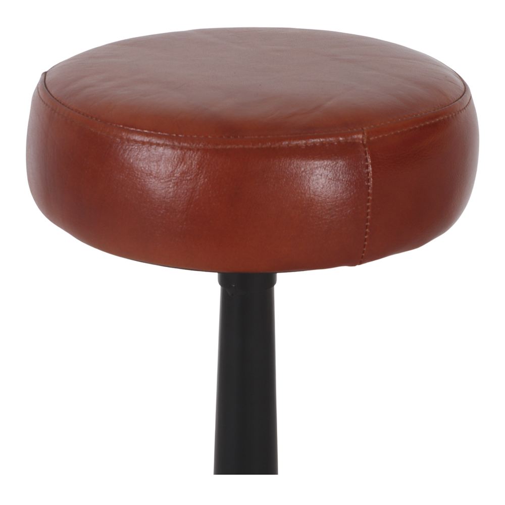 The Alexis high stool follows the Industrial Vintage style. It has a steel frame with powder paint finishing, and its seat is upholstered in leather.