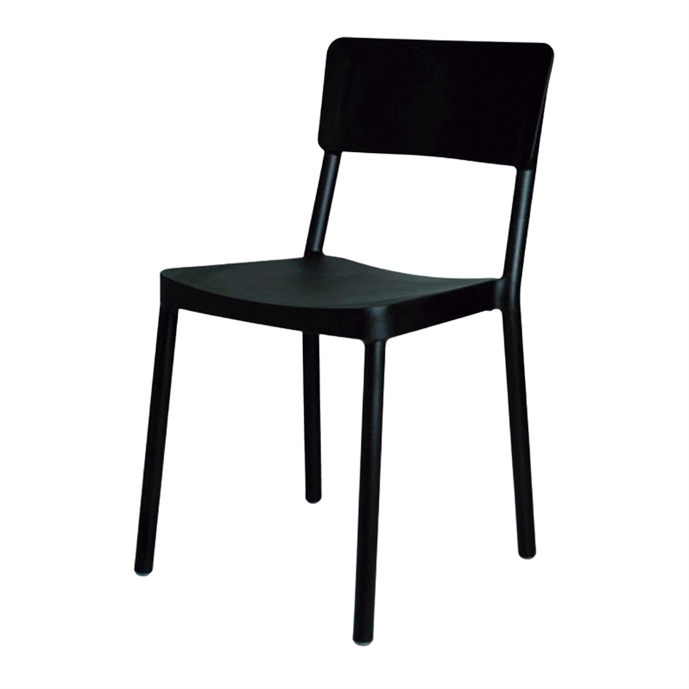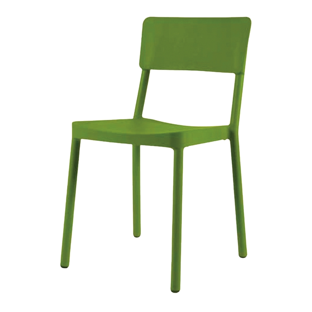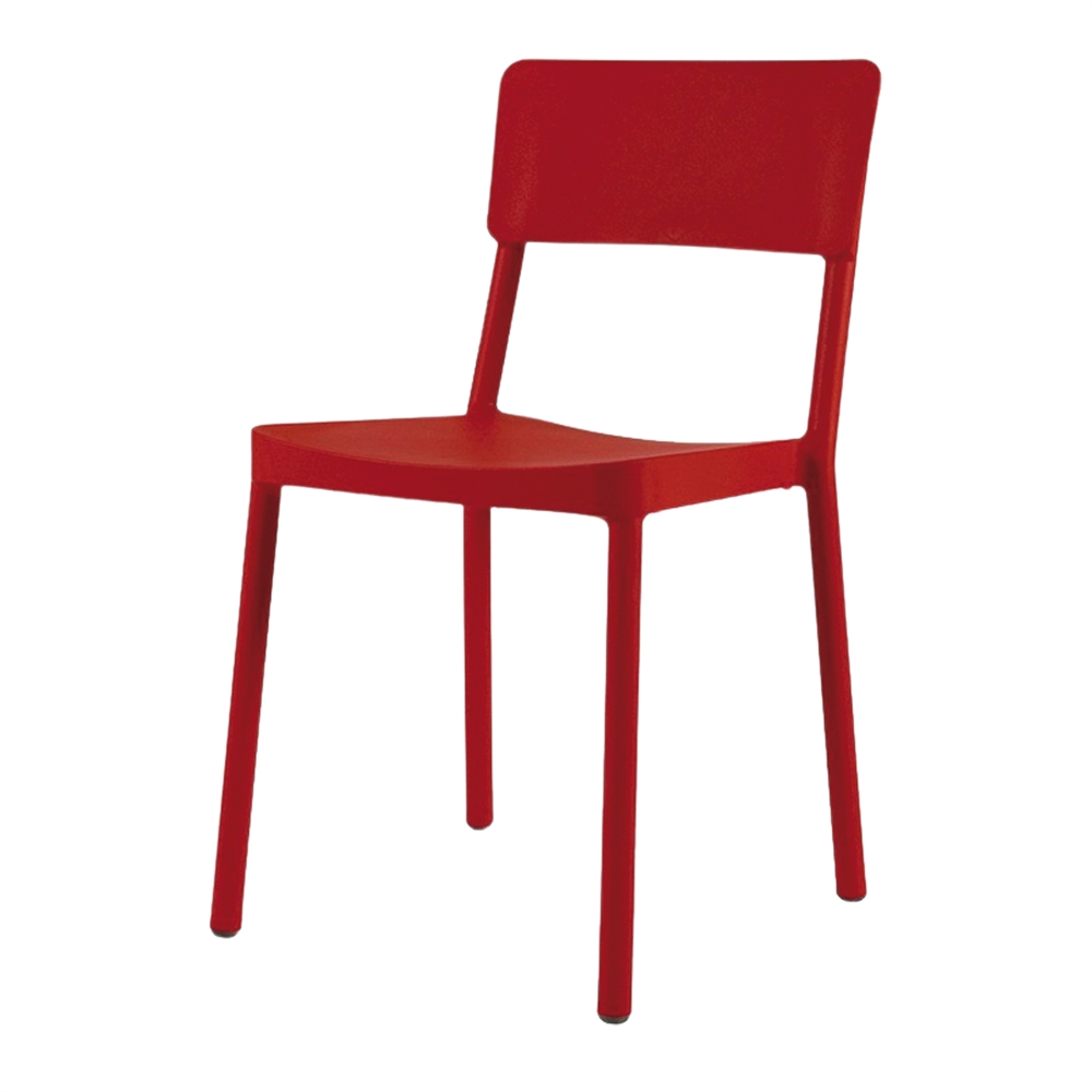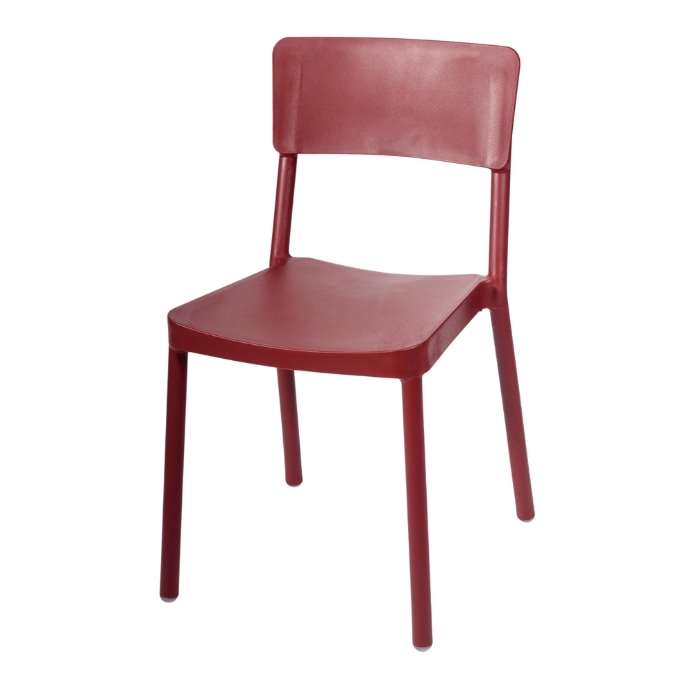 Stackable chair for indoors and outdoors. Injected in fiberglass with PP by gas-assisted molding technology. UV protection.