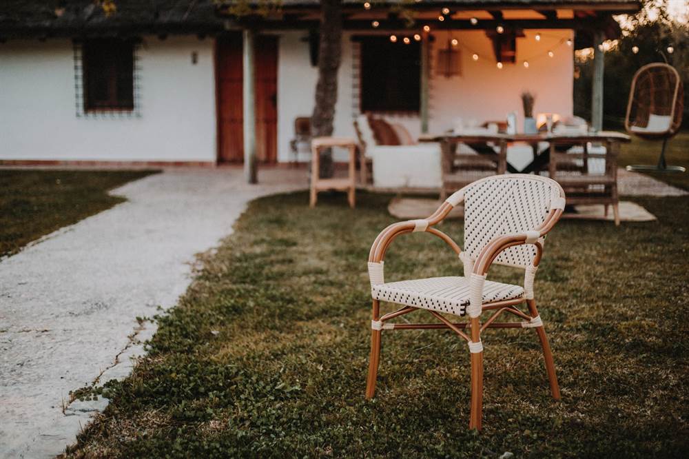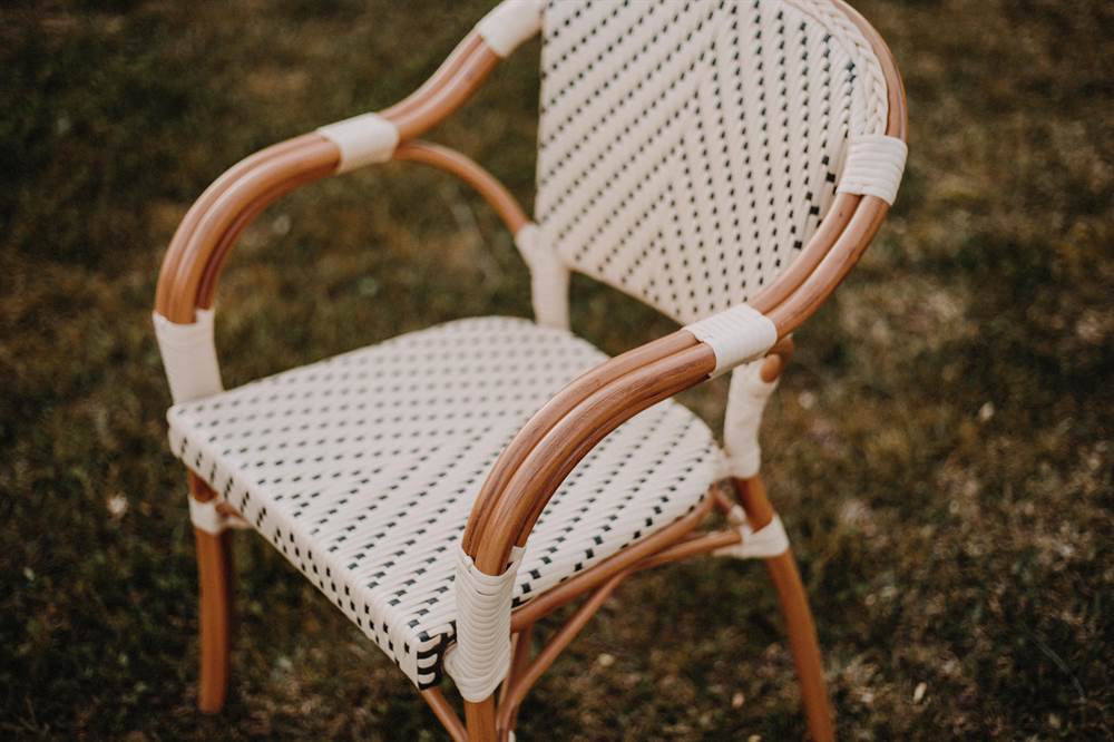 Our Bistro-style Angeles outdoor chair is made of aluminum with a faux rattan and synthetic pith finish. Synthetic rattan is about to make its way into any outdoor setting, and it’s no surprise: its solid weave lends texture to the look and has been used in some of the most iconic designs in decorating history. In this outdoor chair, synthetic rattan brings a more contemporary feel than traditional rattan and is easy to maintain. Perfect for a patio, deck or garden. Mix it with other Bistro style furniture for the perfect combination. Its unique design is the recipe for an original piece that will add a Parisian touch to your space.