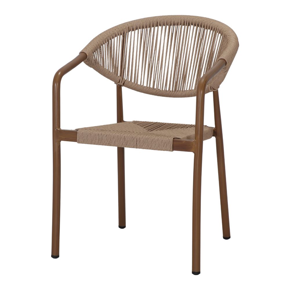 Our Antony outdoor chair has an aluminum frame with a painted finish. The seat and backrest are made of braided rope. This outdoor chair has a Mediterranean style. Thanks to its manufacturing materials, it is a very comfortable and light chair, besides having a very easy maintenance, which stands out for the convenience when it comes to cleaning it. It is ideal for hospitality, for all these features and for being a chair with a nice design and an original combination of materials and colors.