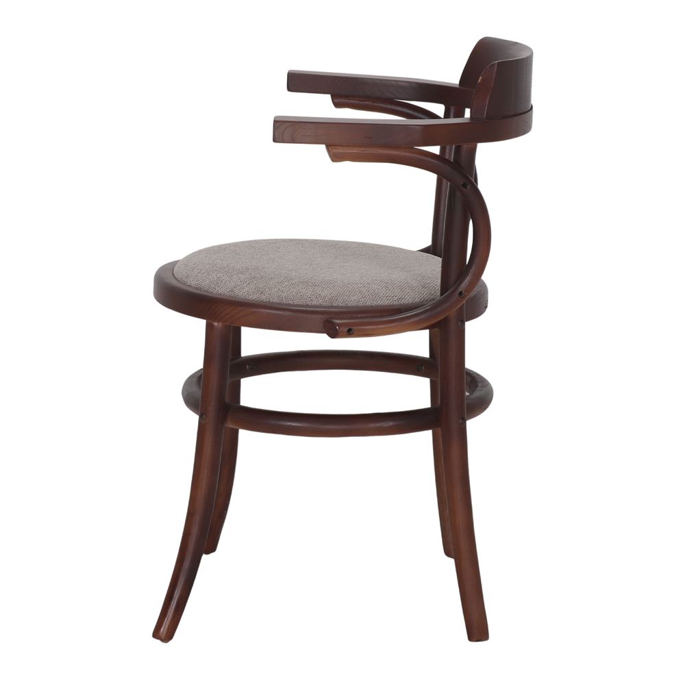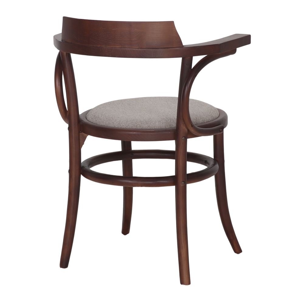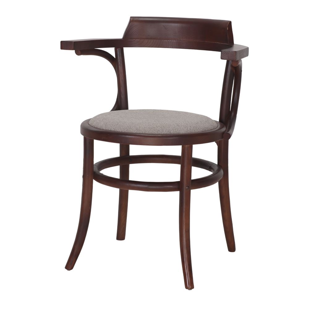 The truffle-colored textile upholstered seat adds a touch of sophistication and comfort, perfectly complementing the walnut finish of the wood. This neutral and elegant tone brings visual balance, making the chair not only a functional element, but also a focal point in the decor.