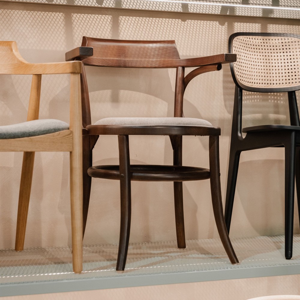 The Arcadia wooden chair Bistró style is a piece of furniture that captures the essence of classic design with a contemporary twist. Crafted from elm wood, known for its strength and durability, this chair stands out for its walnut finish, which brings a natural, sophisticated warmth to any space.
