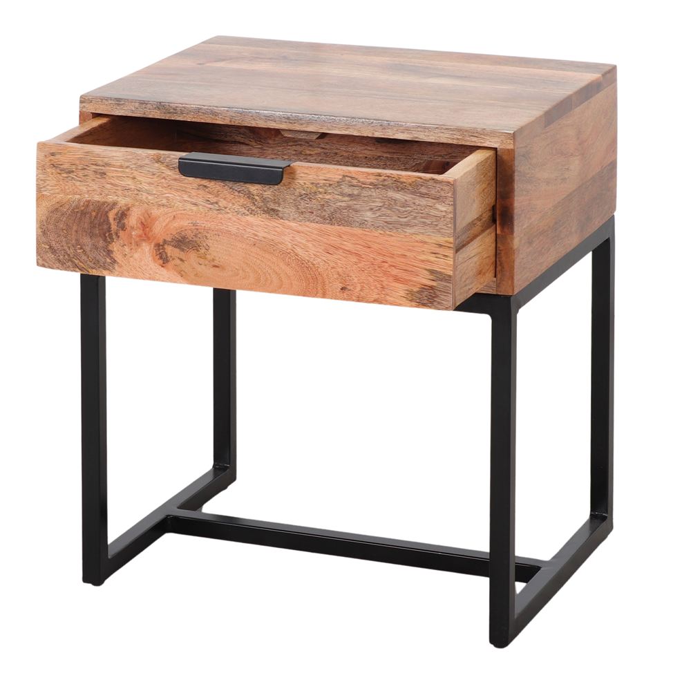 Made of solid mango wood with 1 drawer.