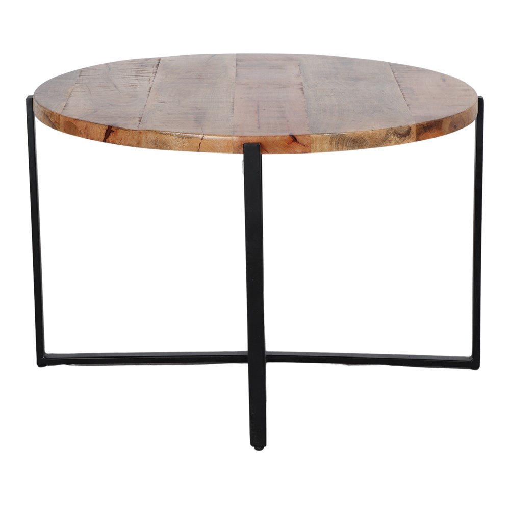 Belladona wooden side table Industrial style with tubular steel frame in powder paint finishing, and rounded tropical wood tabletop.