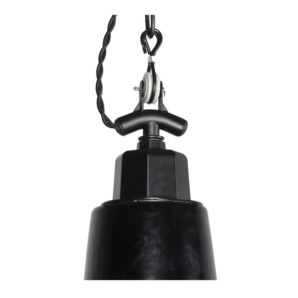 Ceiling lamp Industrial style. Made of steel, with black powder coated painting, with the interior of the lampshade in white.