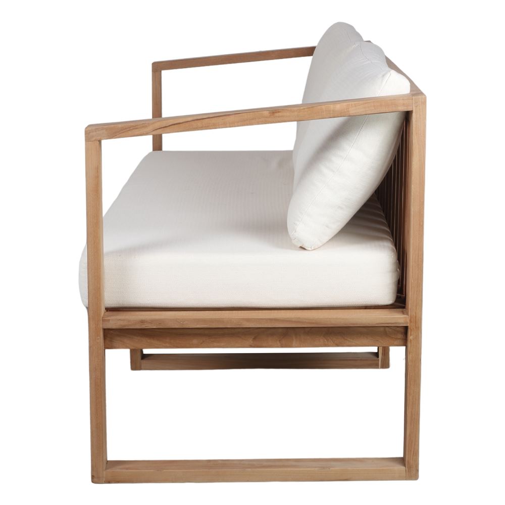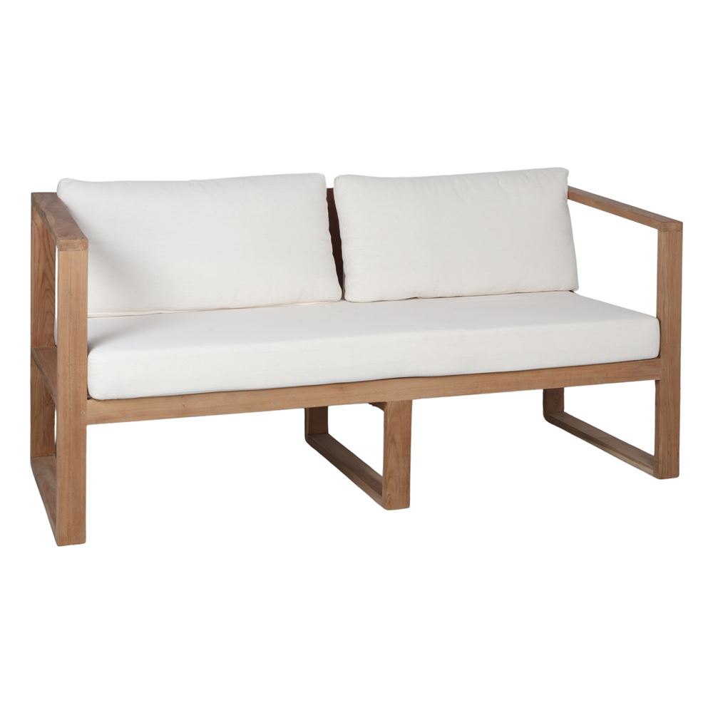 The Borel wooden bench with cushions fuses rustic elegance and contemporary comfort. Its solid teak wood frame, known for its durability and strength, ensures a long service life. The rustic design is enhanced by exquisite cushions upholstered in a soft textile, offering a comfortable seat and backrest. The combination of the natural wood and the neutral tones of the textile creates a piece that blends seamlessly into any space, whether indoors or outdoors under cover. This wooden bench is not only a symbol of quality craftsmanship, but also an invitation to relax and enjoy quiet moments with a touch of rustic charm.