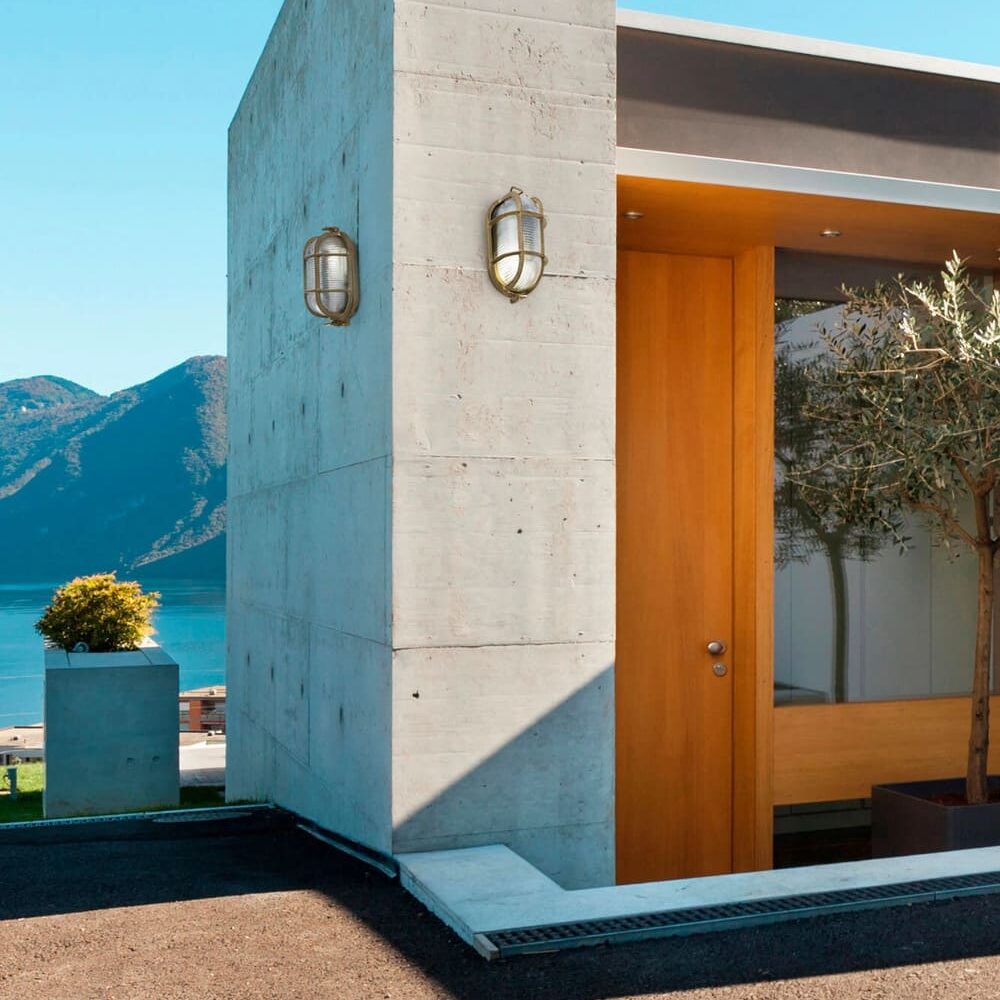 The Cabo wall light is perfect for an Industrial style space. Made of brass and carved opal glass, this wall lamp also fits in vintage style spaces or even nautical airs.