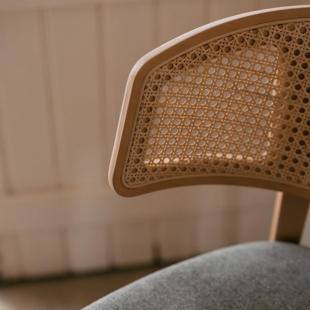 The cannage-style rush backrest gives it a light, handcrafted feel, creating a perfect balance between tradition and modernity. This detail not only embellishes the piece but also improves breathability and comfort when sitting, resulting in a functional piece of furniture with great aesthetic personality.