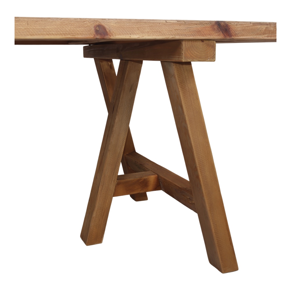 The distinctive character of Colette table trestles lies in their careful craftsmanship and attention to detail. Each piece of reclaimed wood brings a unique story, with grain and knots that add character and authenticity to the final product. The distressed finish highlights the natural beauty of the wood, bringing warmth and texture to any space.