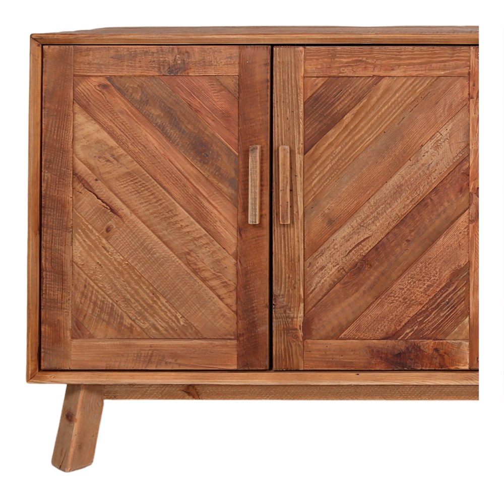Wooden buffet made of recycled pinewood with 4 herringbone-shaped slatted doors.