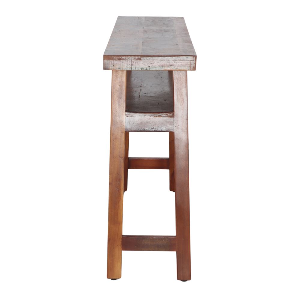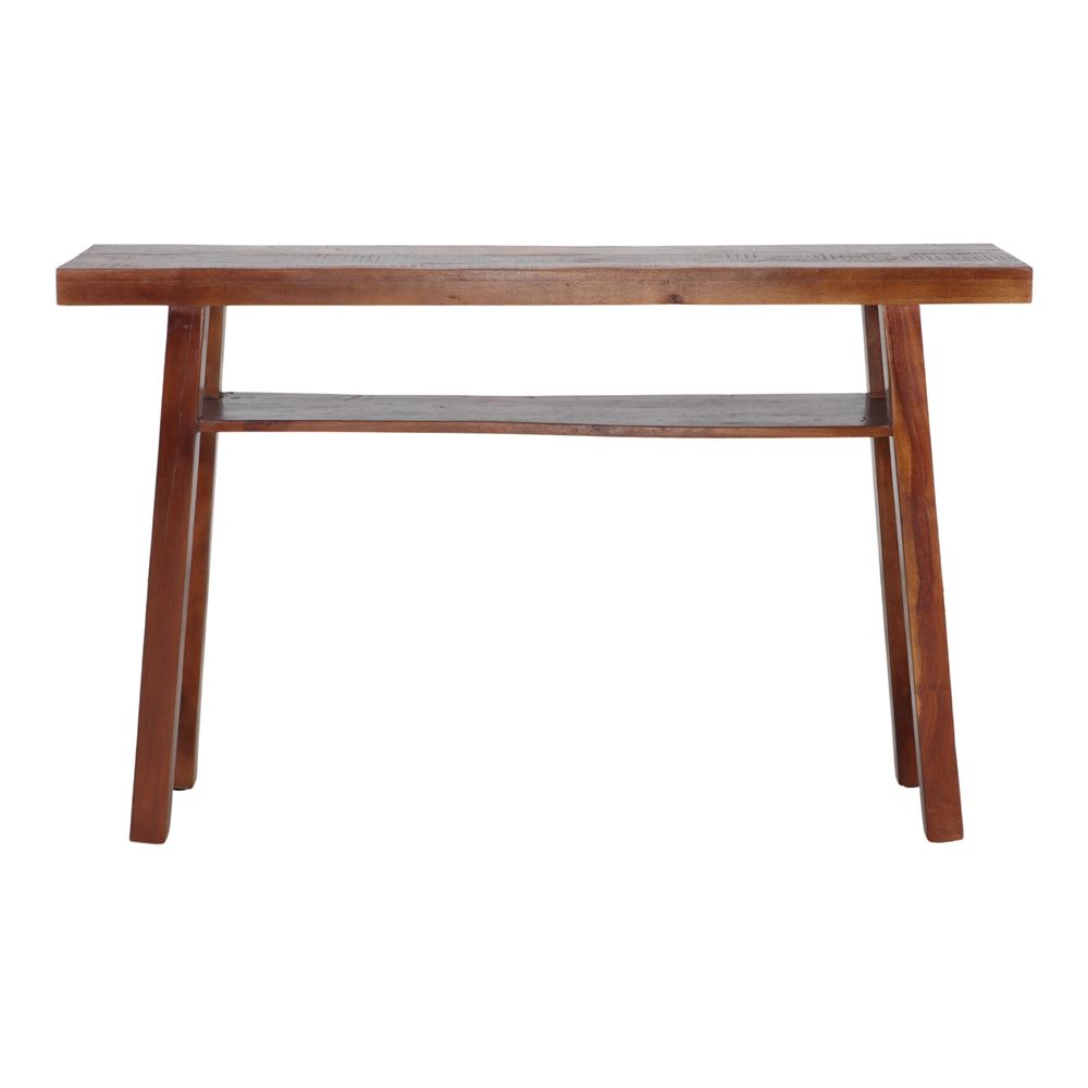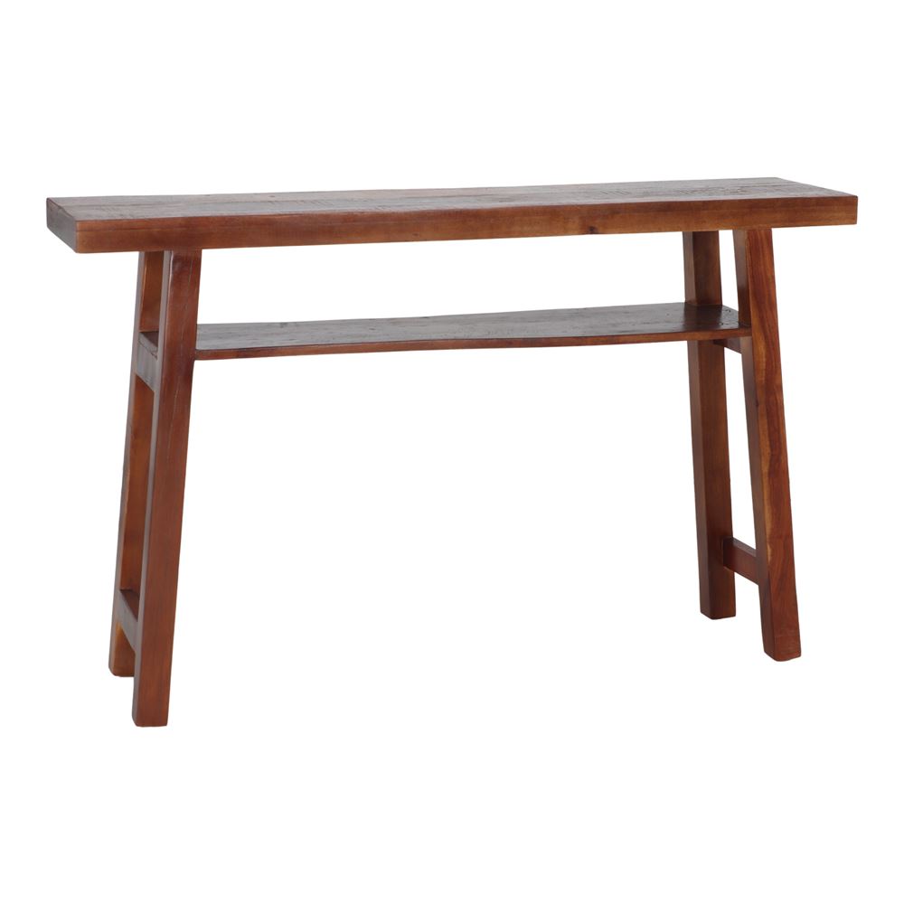 Rectangular console made of recycled solid pine wood with lower shelf.