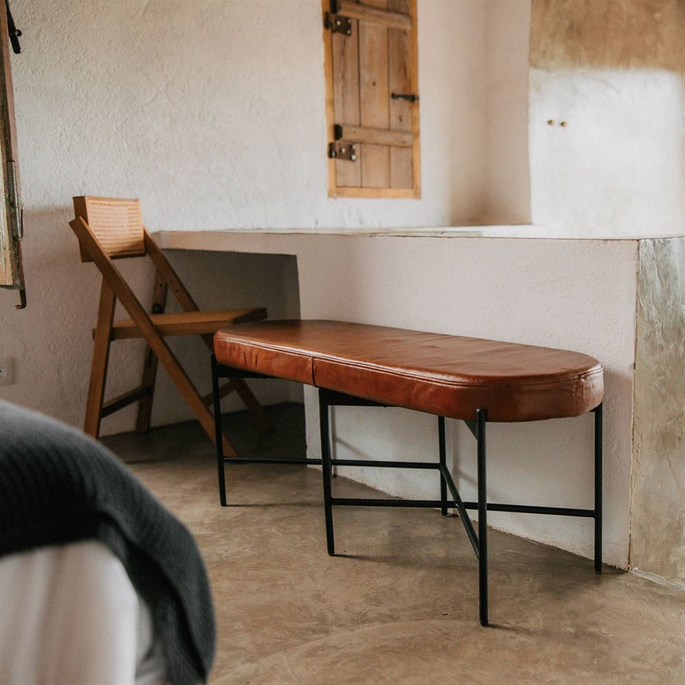 The Dumby leather bench is the perfect seat for a Vintage or Industrial style space. Its metal frame make this a really stable and resistant bench, and its fluffy seat, upholstered in leather, is very comfortable. A lightweight bench to go alongside a big dining table.