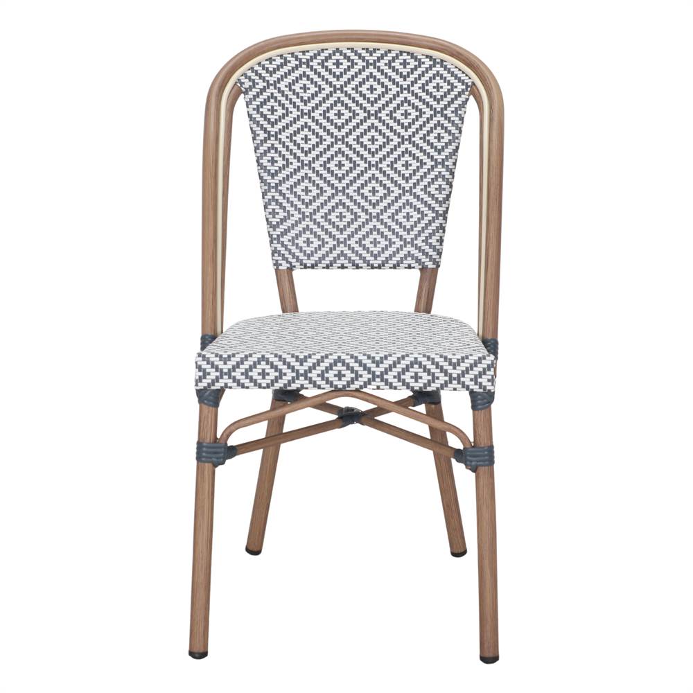 Its strong and lightweight tubular aluminum structure is finished in bamboo imitation, giving it a warm and natural look without sacrificing functionality. This organic look is perfectly complemented by the synthetic rattan pith seat and back, a material that mimics the texture of natural rattan but offers greater resistance to sun, humidity and the passage of time.