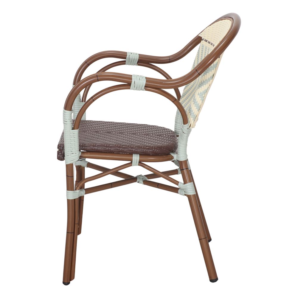 The Ekamia outdoor chair is a Bistro style proposal that combines classic design with modern materials, ideal for creating fresh, cozy environments with a Parisian touch both outdoors and indoors. Its light and timeless silhouette adapts perfectly to terraces, gardens, porches or interior corners with natural charm.