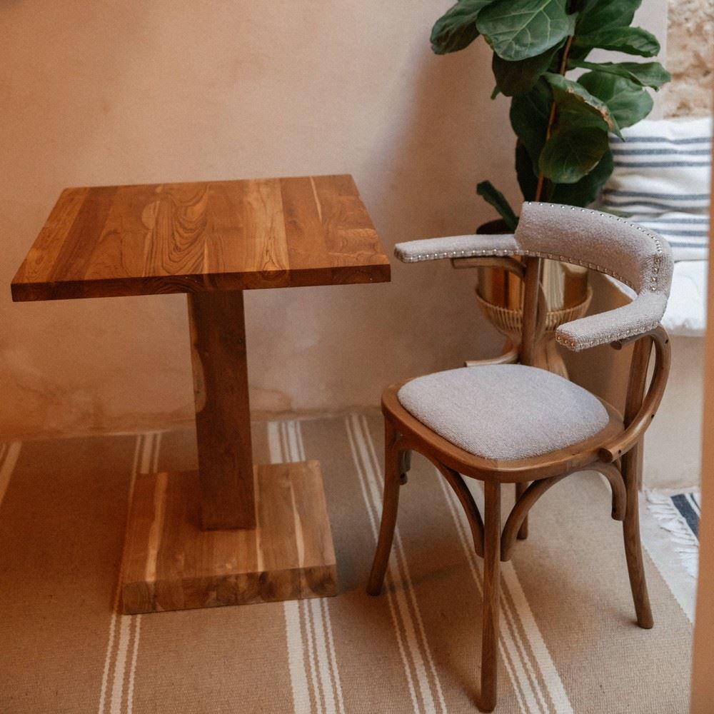 The Emily wooden chair is Bistro style and is upholstered in textile with metal finials. This wooden chair is light, functional, comfortable and resistant, perfect to combine with a nice dining table, or as a desk chair. Its use is for indoor use, you can use it both at home and in the hospitality industry. As we said, it is comfortable and with a classic design, which does not go out of fashion.