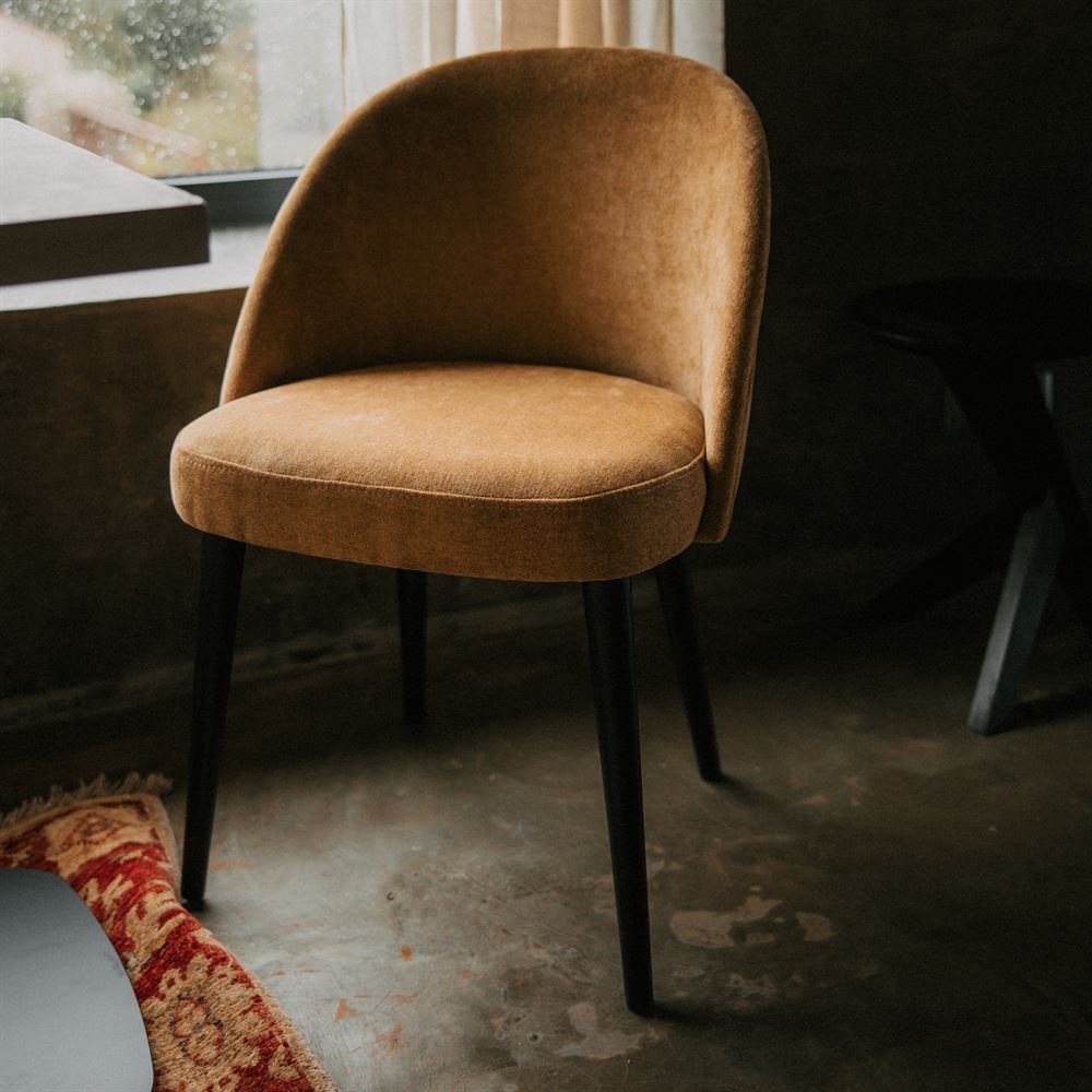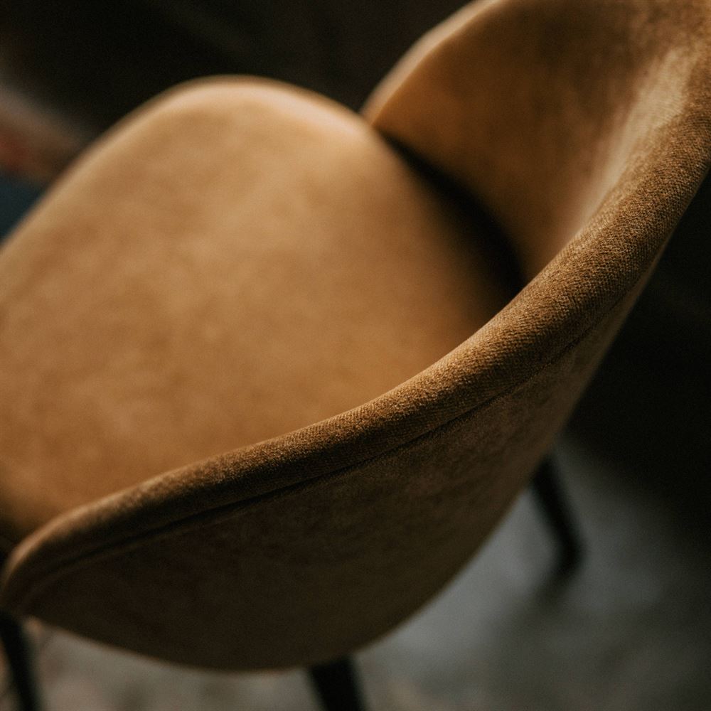 Originality and comfort are at the heart of the design of the Erika upholstered chair. Its textile upholstery will give a soft touch and a comfortable seat as well as a cozy and warm look to your interior. Padded with foam, this upholstered chair is ultra comfortable, making it a perfect dining chair. You can also use it as an extra chair for the bedroom. To make this type of upholstered chair stand out, we will pair it with a minimalist Nordic style dining table for example.