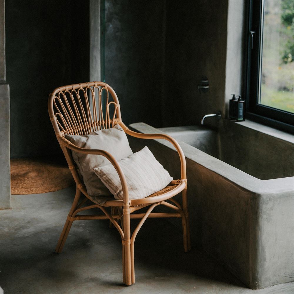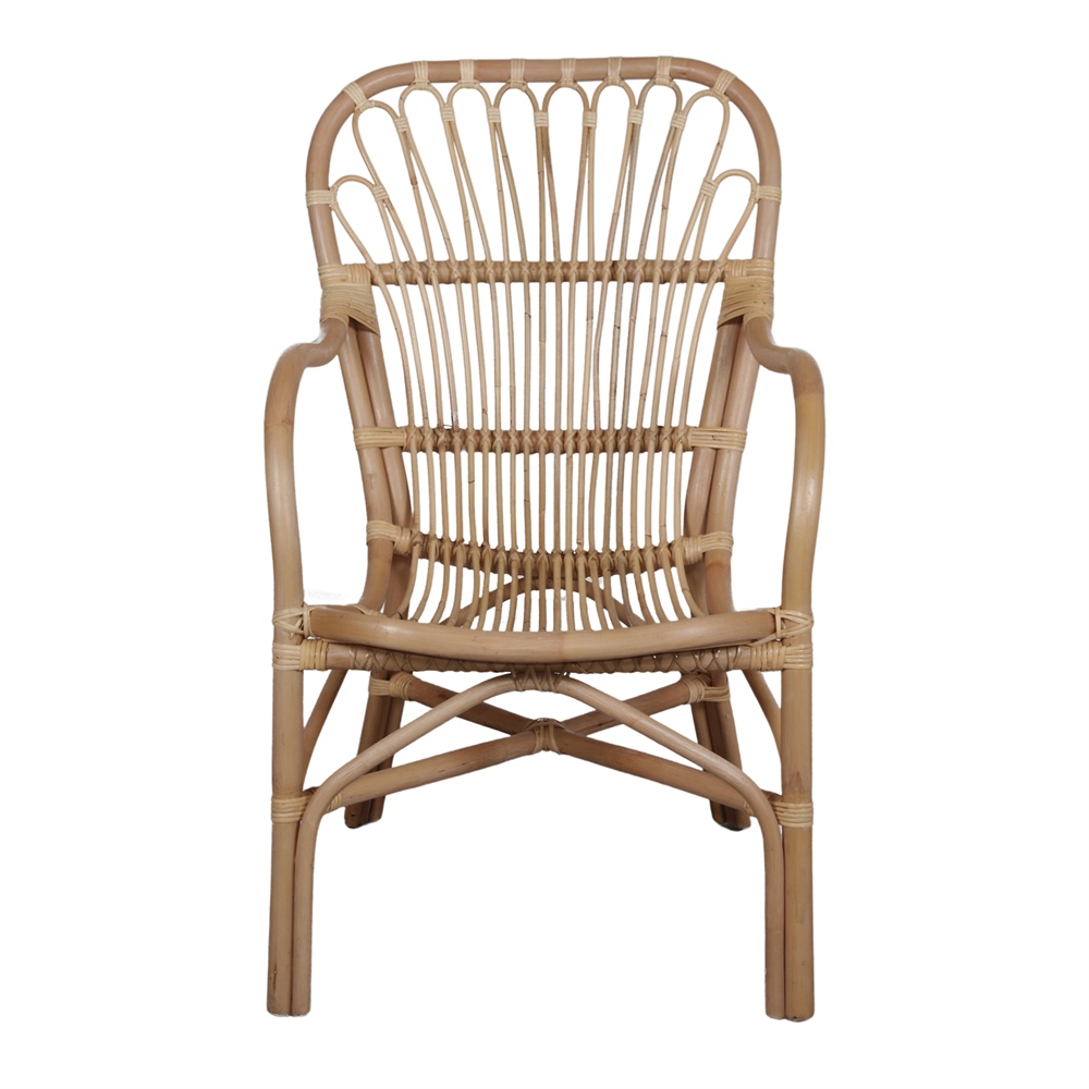 Faraki natural rattan chair, a Mediterranean style chair made entirely of natural fibres. With a classic and simple design, this chair will be the focus of all eyes, with a contemporary, natural colour that combines perfectly with other natural materials such as wood. The Faraki rattan chair has a comfortable design, it will be a must have for your home. Of course, it is perfect for indoors.