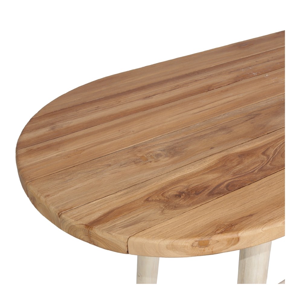 High table Rustic style. Made of solid teak wood with an oval tabletop.