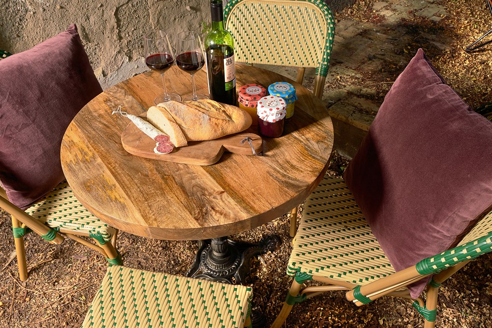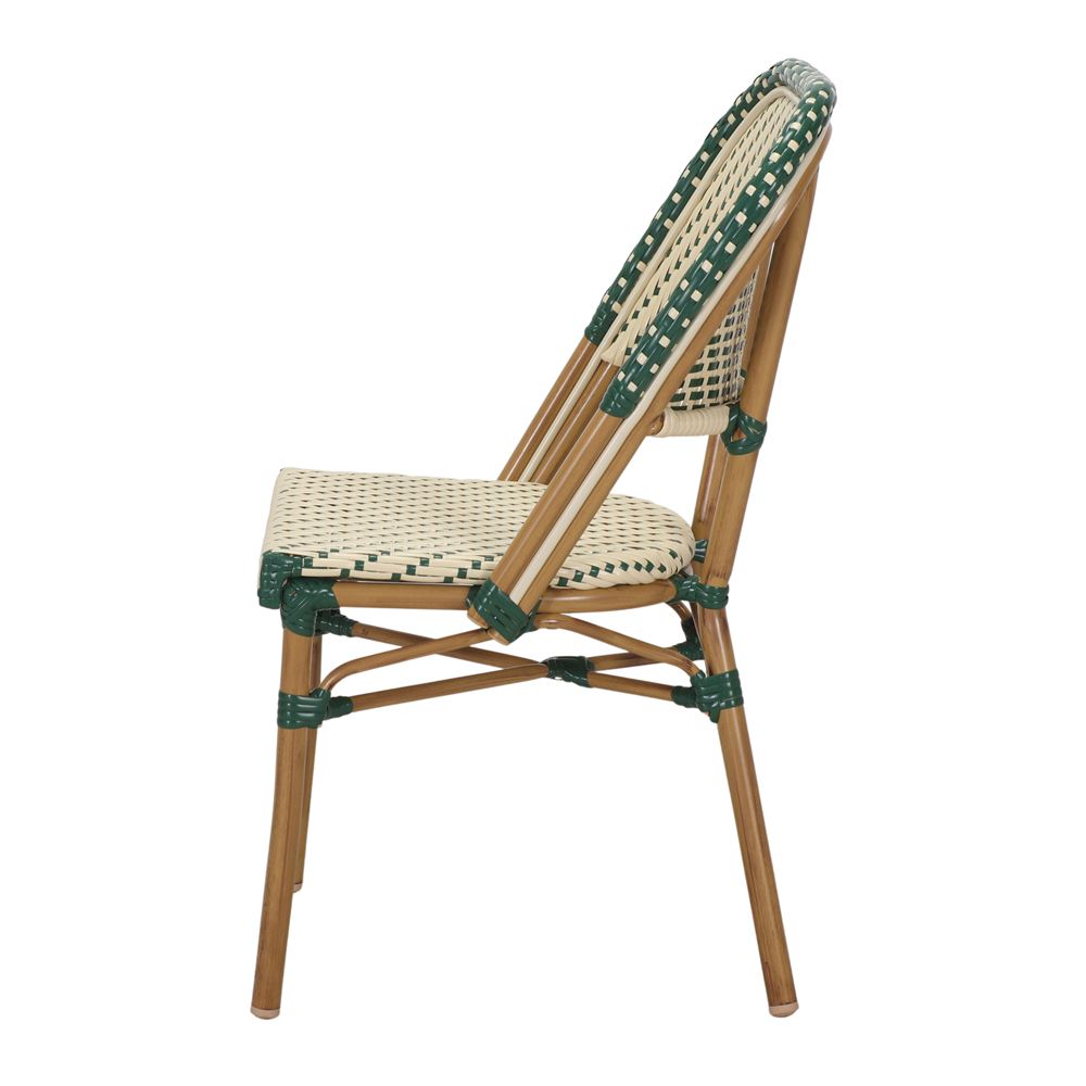 The Guru outdoor chair is stackable, made of aluminium imitating bamboo, and the seat and backrest’s braiding is made of rattan synthetic fiber. Following the Bistro style, this chair is ideal to recreate the Paris cafés, with personality and design. It can be used either on catering premises or on your home’s terrace. Combine it with our Kronos table and achieve the style you are looking for.