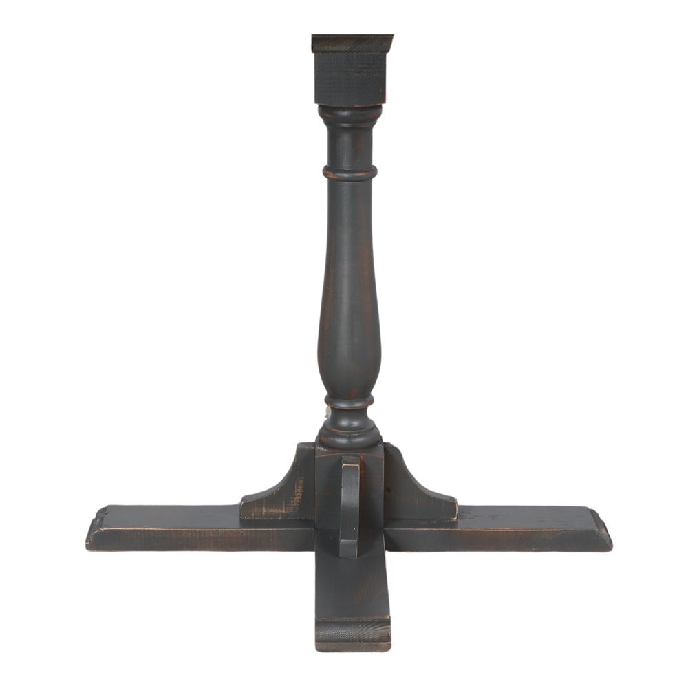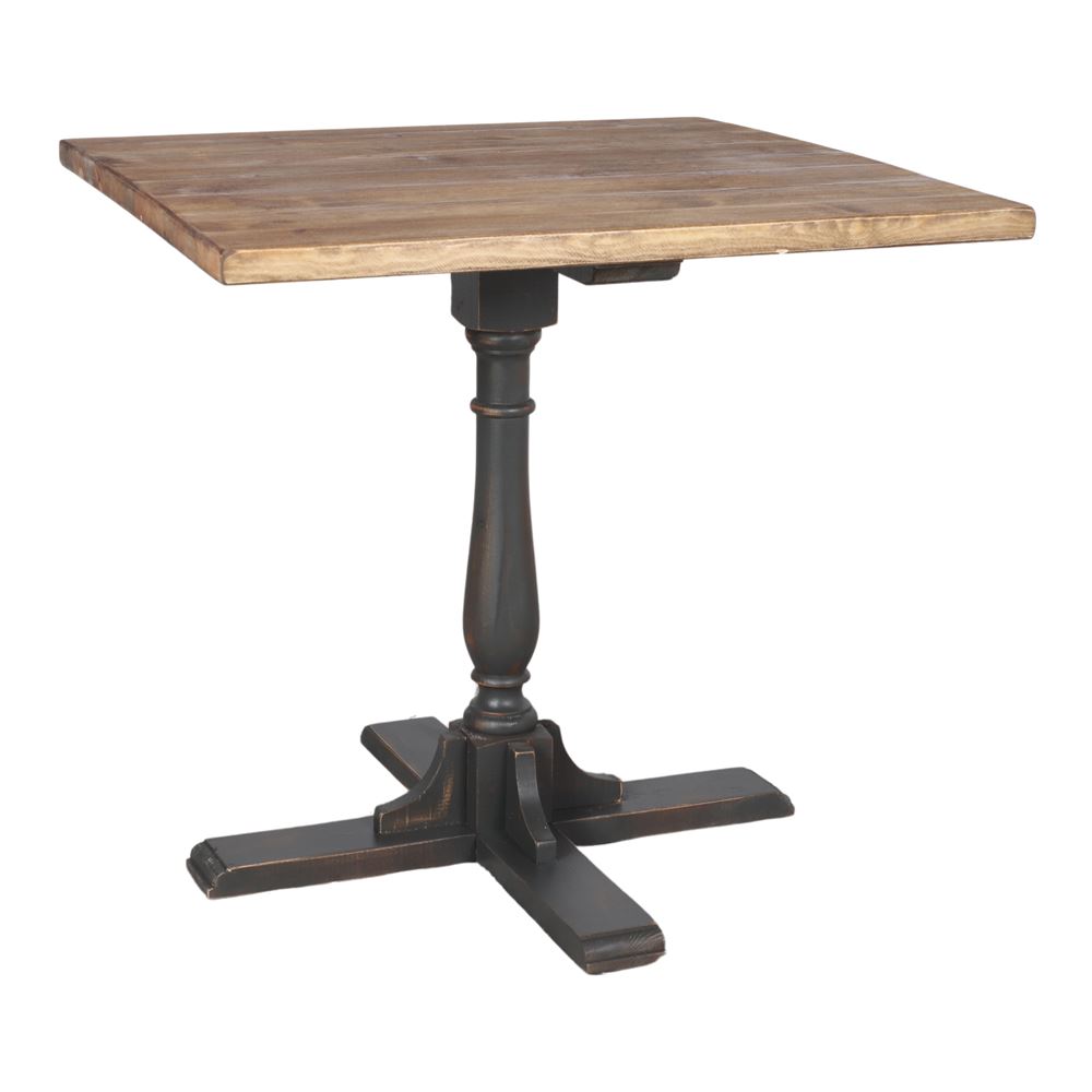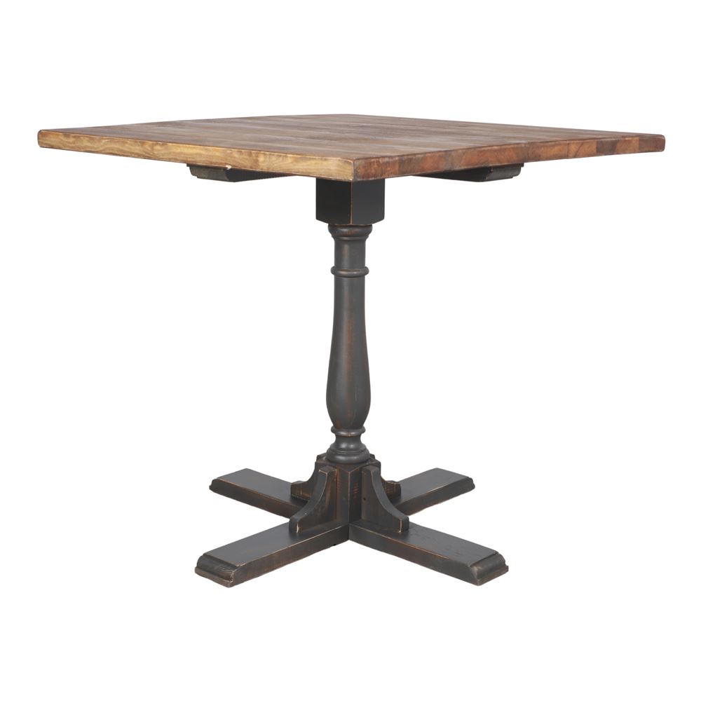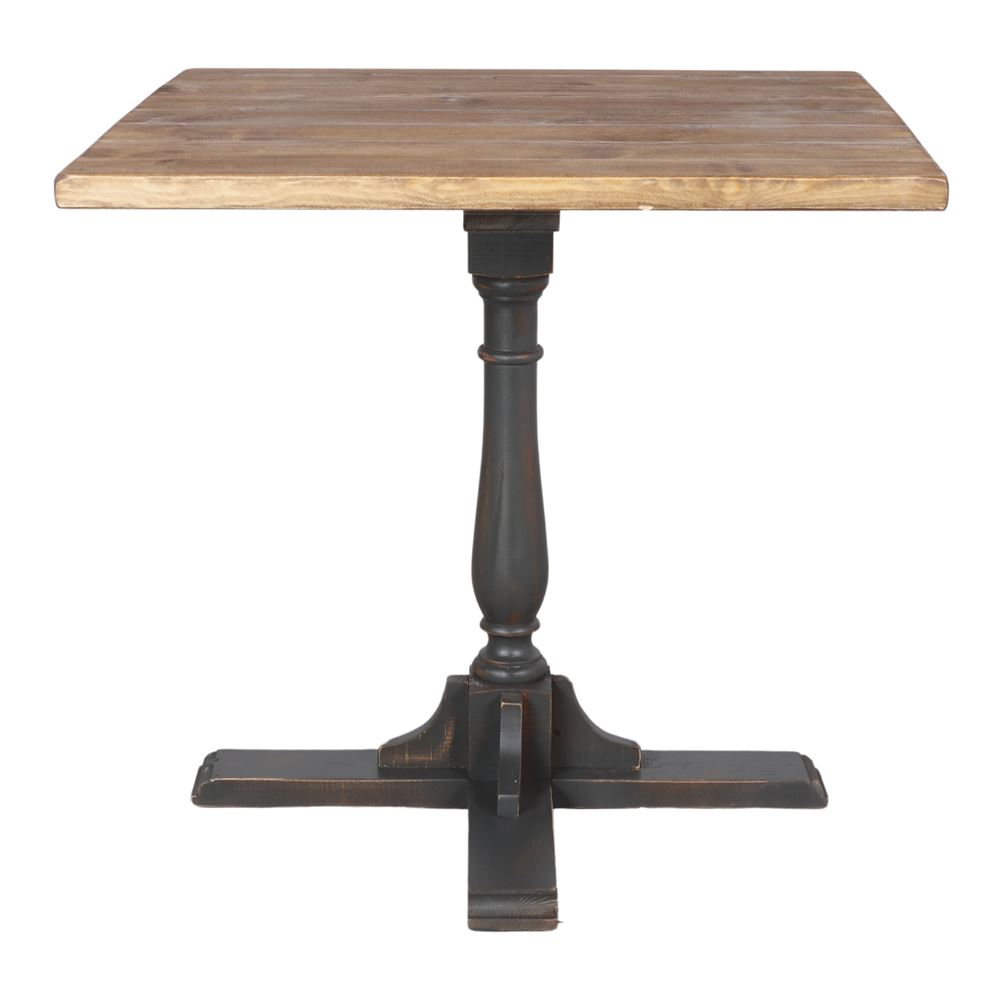 The Huffin dining table follows the Vintage style. It’s a wooden table with a turned central leg.