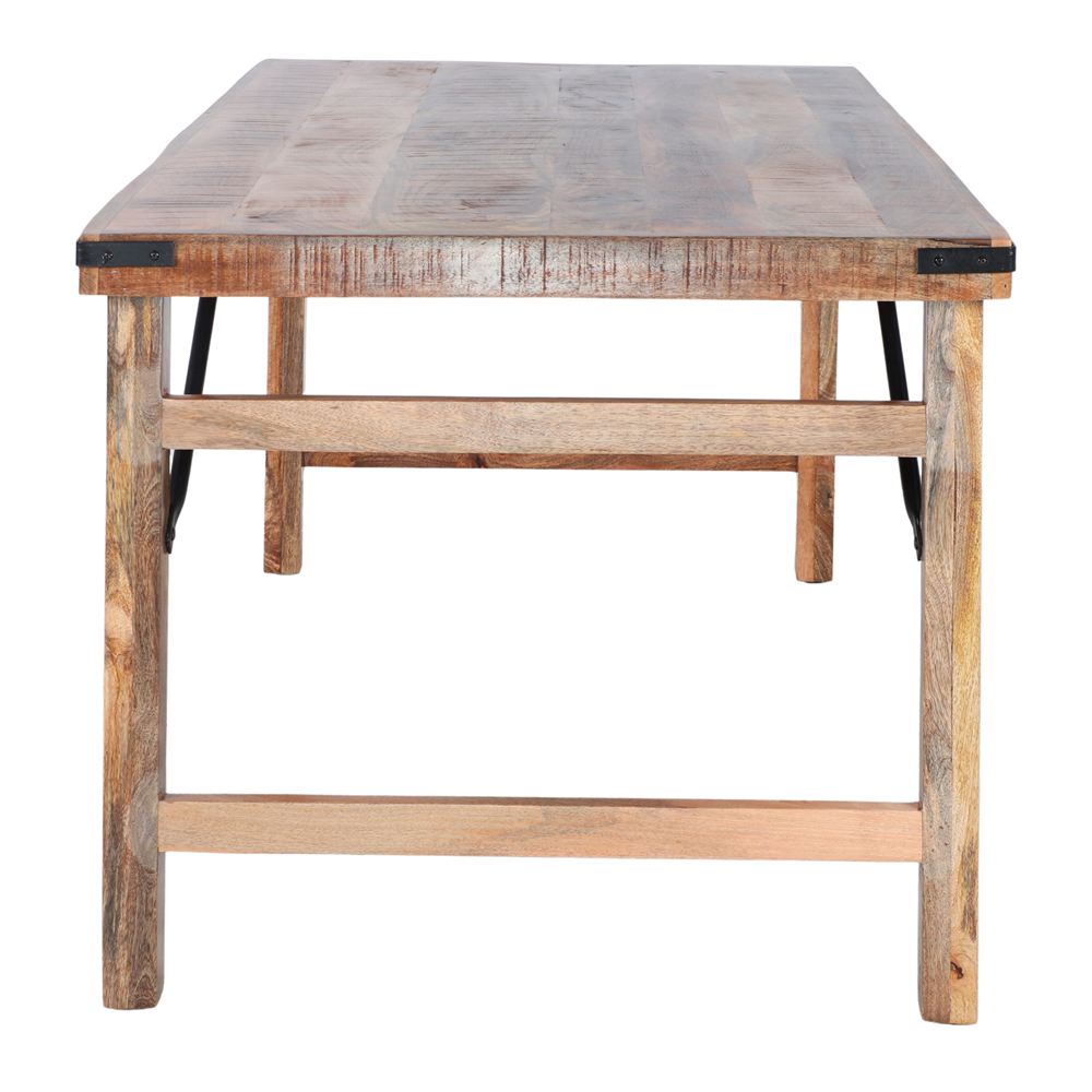 The Imperial wooden table follows the Vintage style. It’s made of aged tropical wood, and it has foldable legs (folding inwards)
