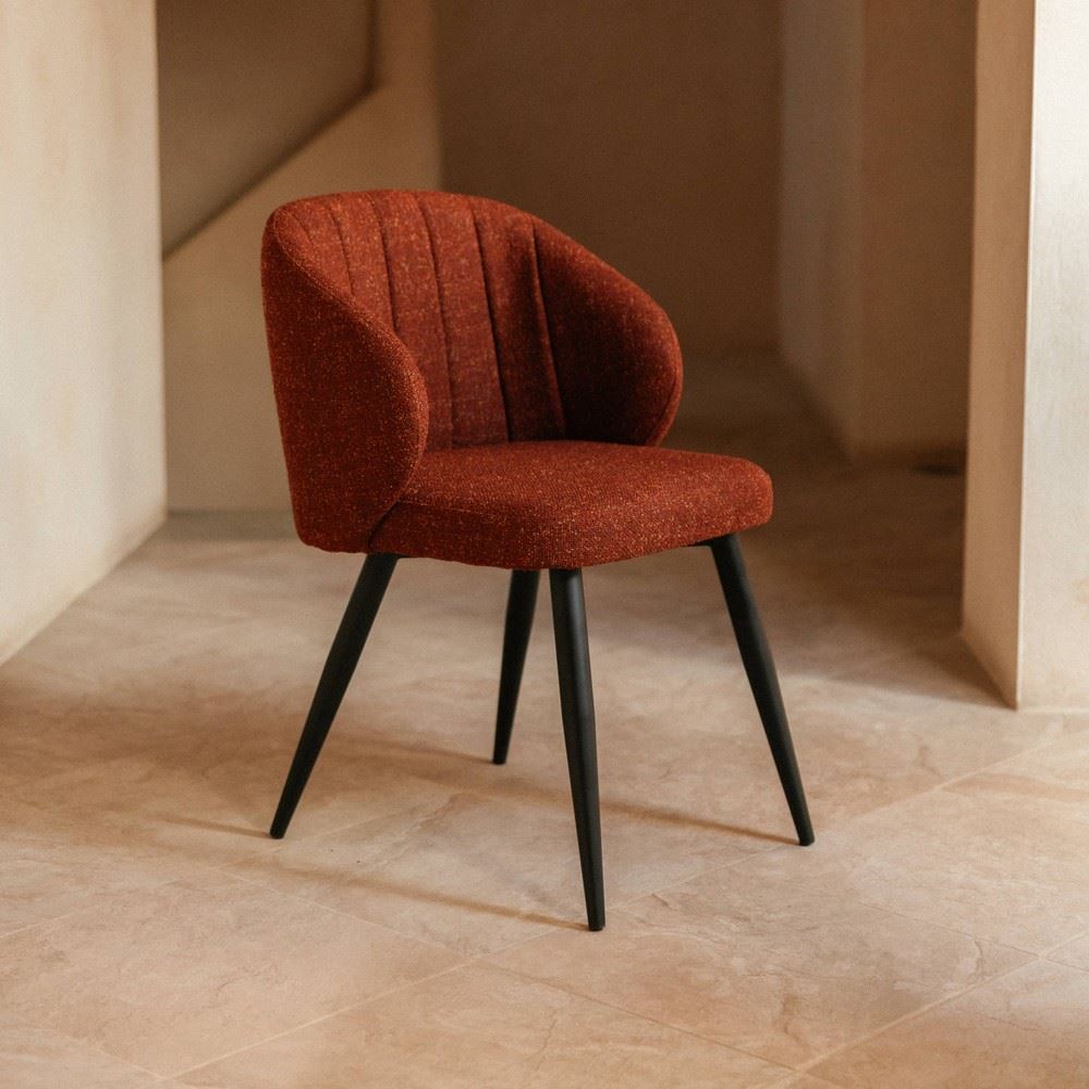 inOriginality and comfort are at the heart of the Inside upholstered chair ‘s design. Its fabric upholstery will provide a soft touch and a comfortable seat as well as a warm and welcoming look to your indoor space. Cushioned in foam, this chair is ultra comfy, which makes it a perfect dining room chair. You can also use it as a desktop chair. To make this upholstered chair shine we can combine it with a Mid Century style dining table.