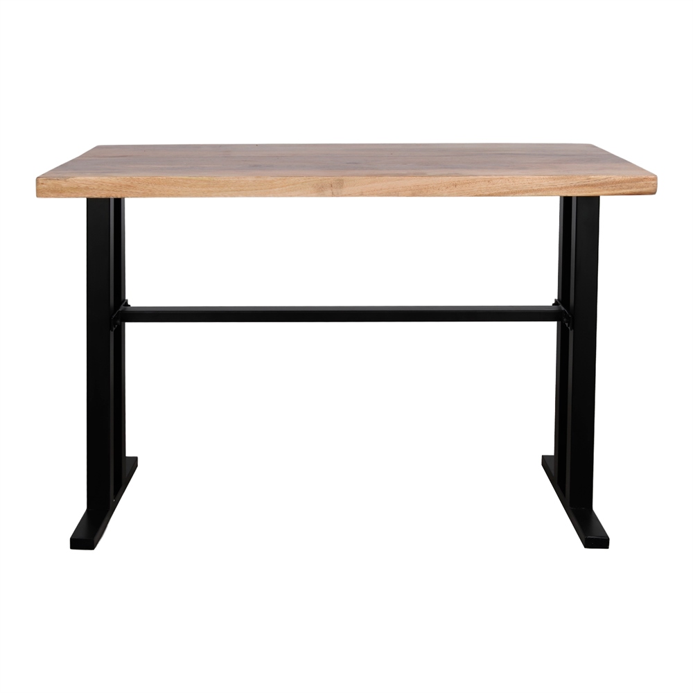 The Isidora wooden table follows the Industrial / Contemporary style. It has a tubular steel frame with powder paint finishing and a solid mango wood tabletop Delhi model.