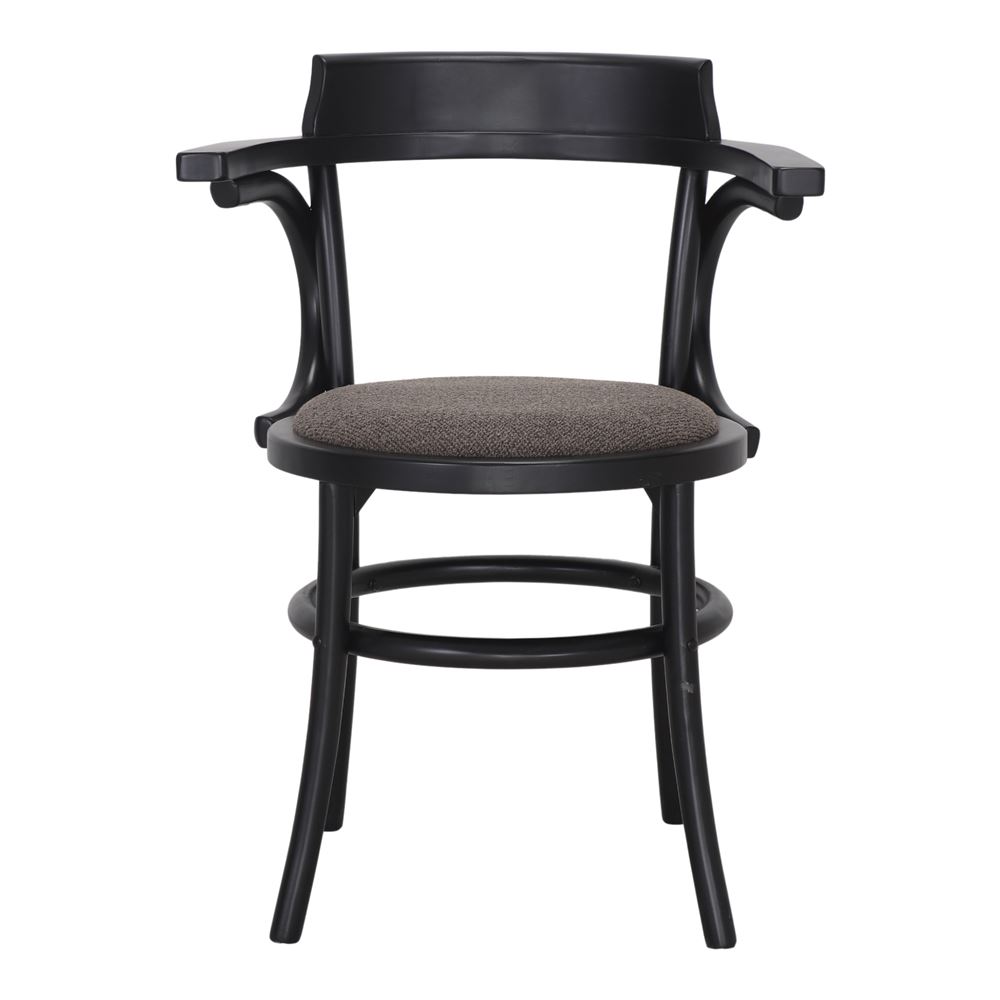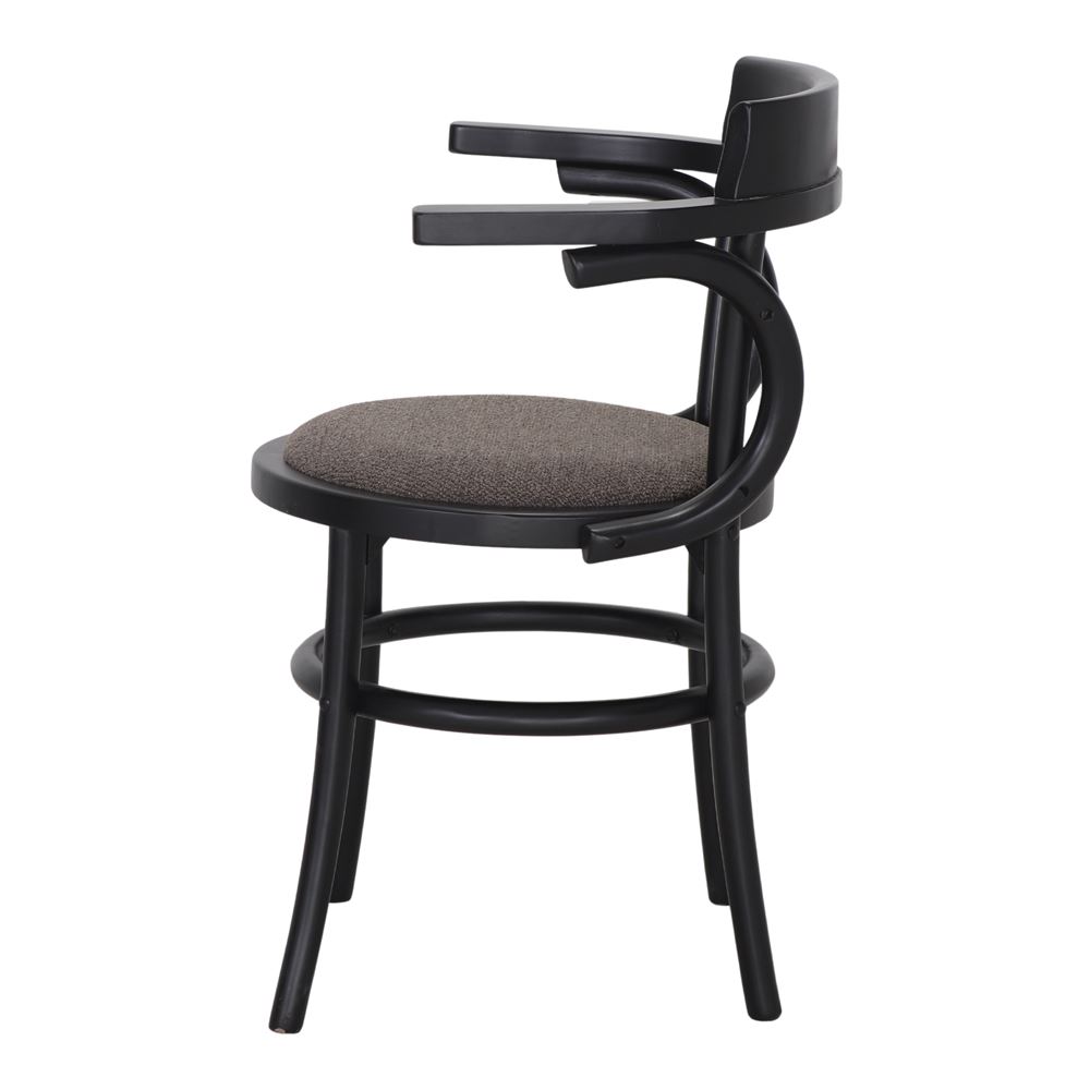 The truffle-colored textile upholstered seat adds a touch of sophistication and comfort, perfectly complementing the walnut finish of the wood. This neutral and elegant tone brings visual balance, making the chair not only a functional element, but also a focal point in the decor.