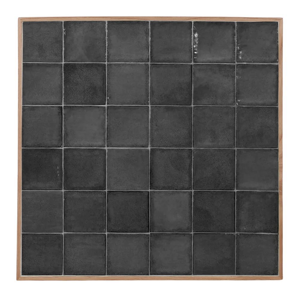 Made of solid chestnut wood with 10×10 cm. ceramic tiles. Wooden frame of 1 cm.