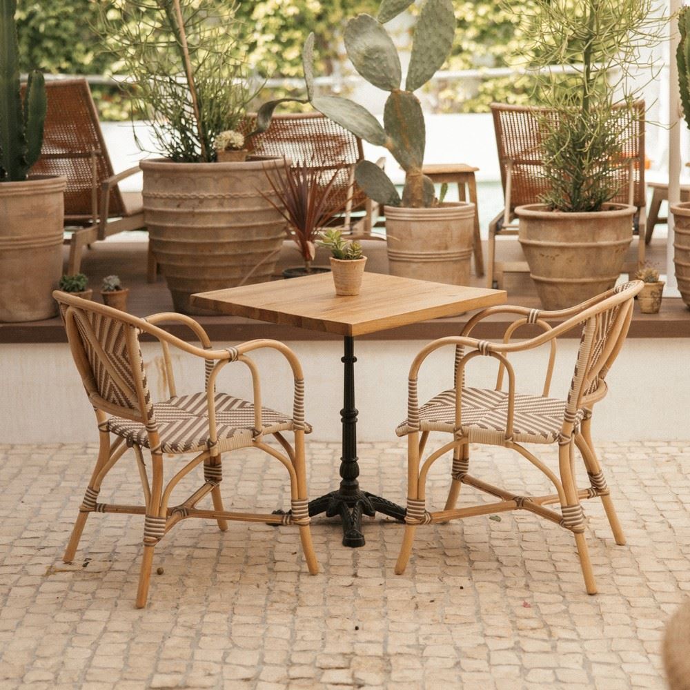 One of the trends of the season is our Lisbon rattan chair, made from natural rattan and synthetic pith. Rattan is about to make its way into every home, and it’s no surprise: its solid weave lends texture to the look and has been used in some of the most iconic designs in decorating history. In this rattan chair, synthetic rattan brings a more contemporary feel than traditional rattan and is easy to maintain. Perfect for any interior. Mix it with other Bistro style furniture for the perfect combination. Its unique design is a recipe for an original piece that will add a Parisian touch to your space.