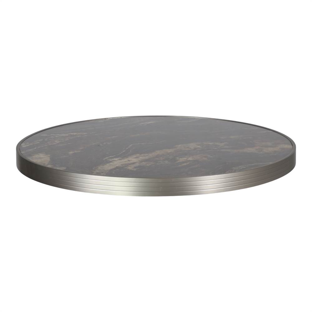 The Lorna Deco tabletop, perfect for classically styled rooms, is made of stratified plywood with a blue storm finishing. The tabletop is encased in an aluminum frame with a matte copper anodized finishing, a detail that gives a shiny and elegant touch. This tabletop can be combined with one of our table frames.