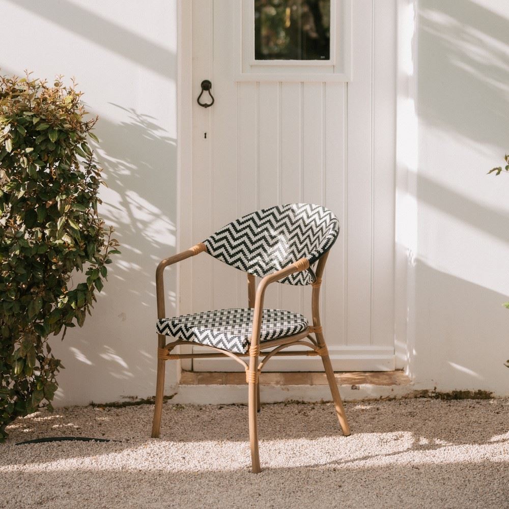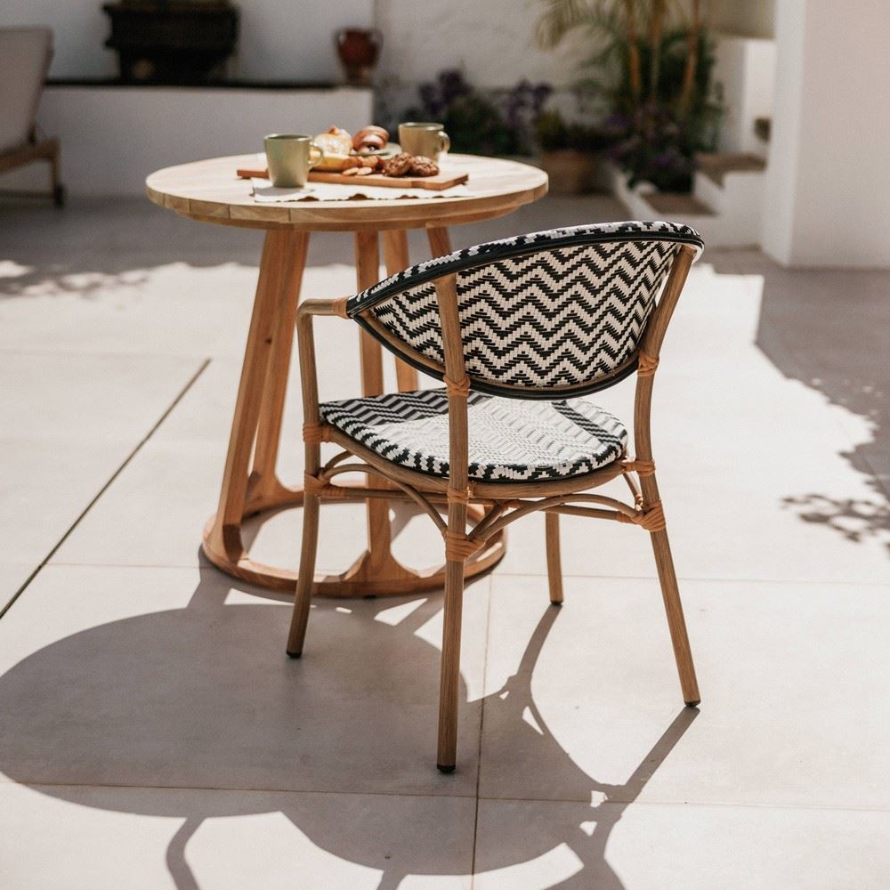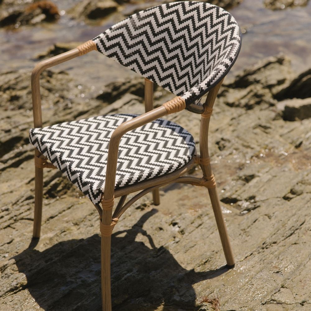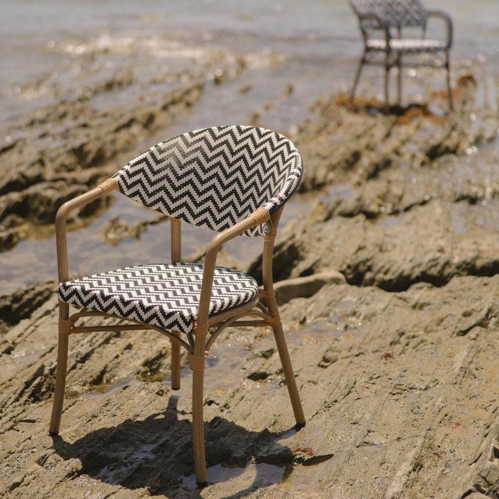Our Bistro-style Lungo outdoor chair is made of aluminum with a faux rattan and synthetic pith finish. Synthetic rattan is about to make its way into any outdoor setting, and it’s no surprise: its solid weave lends texture to the look and has been used in some of the most iconic designs in decorating history. In this outdoor chair, synthetic rattan brings a more contemporary feel than traditional rattan and is easy to maintain. Perfect for a patio, deck or garden. Mix it with other Bistro style furniture for the perfect combination. Its unique design is the recipe for an original piece that will add a Parisian touch to your space.