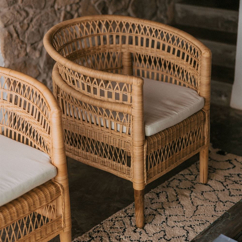 The Malawi rattan armchair with armrests is an iconic piece that will look great in any space. This unique piece will add lots of Mediterranean personality to any modern or traditional interior space. It’s such a pleasure to sit on the Malawi armchair, with its comfortable proportions, and this makes it the perfect armchair for any home.