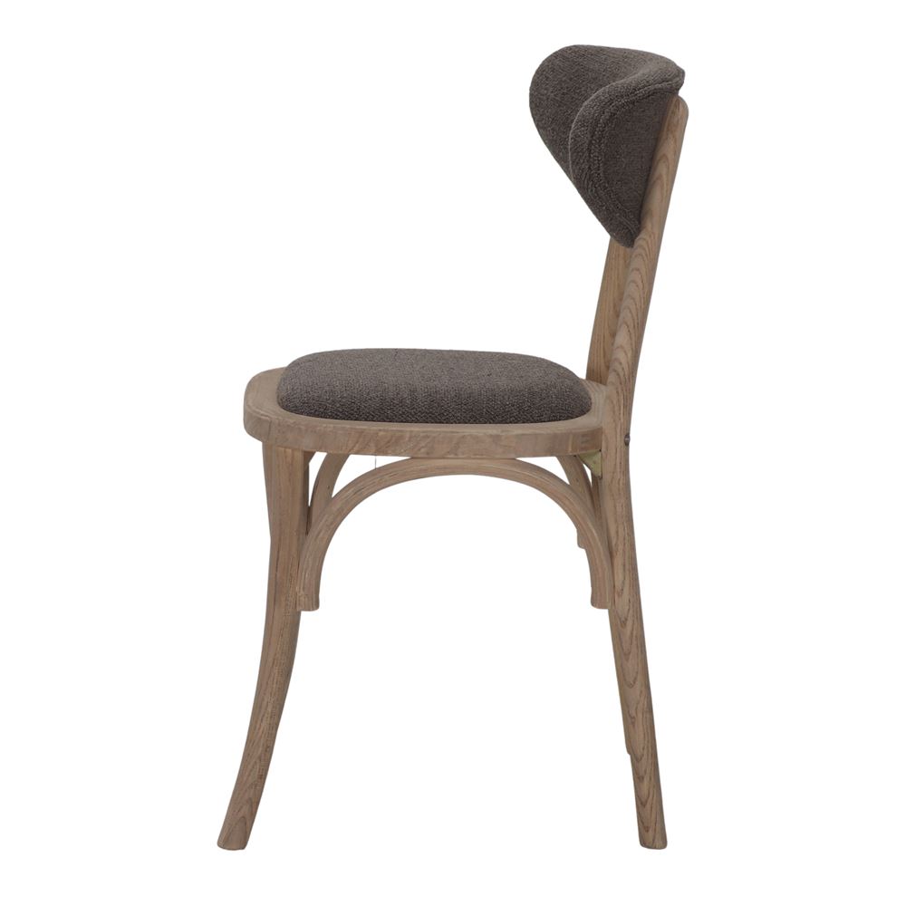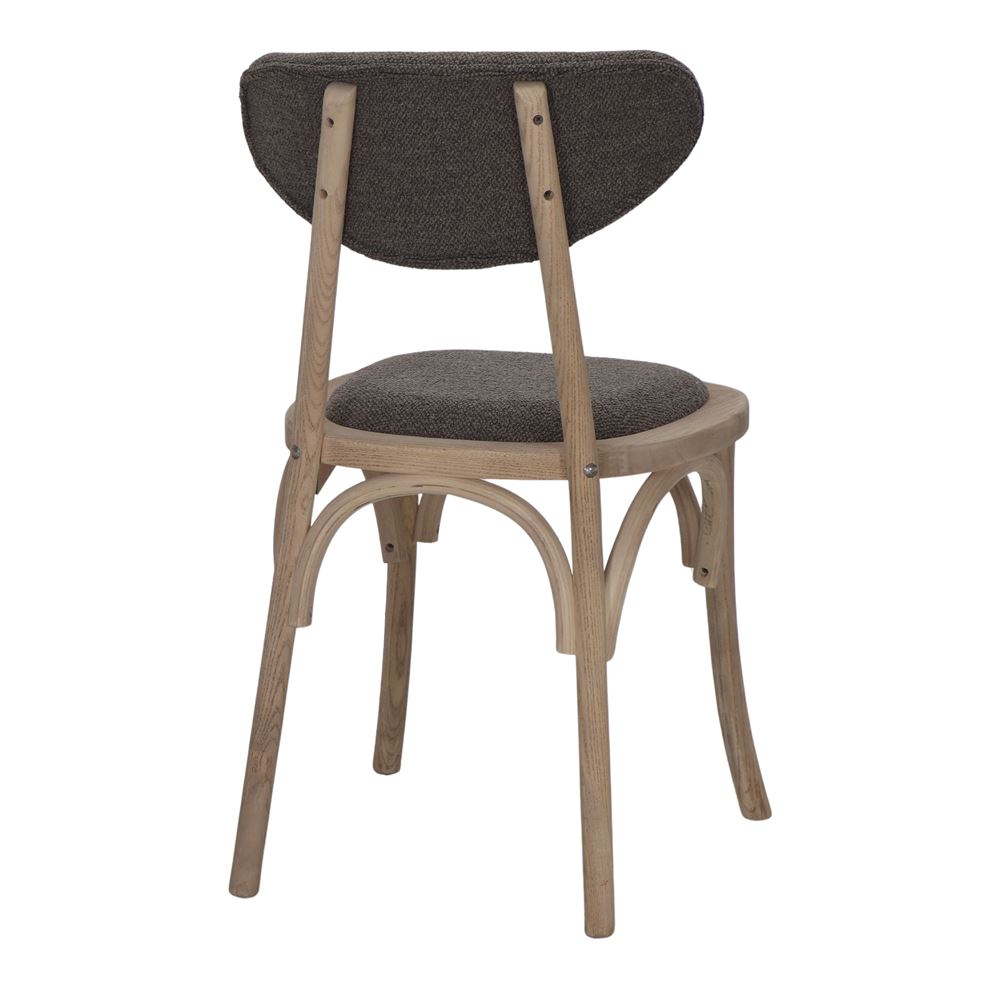 The curved backrest design and turned legs reflect meticulous attention to detail, evoking the charm of bygone eras. In addition, the textile upholstered seat and back provide comfort and softness, while complementing its vintage style with a restful texture.