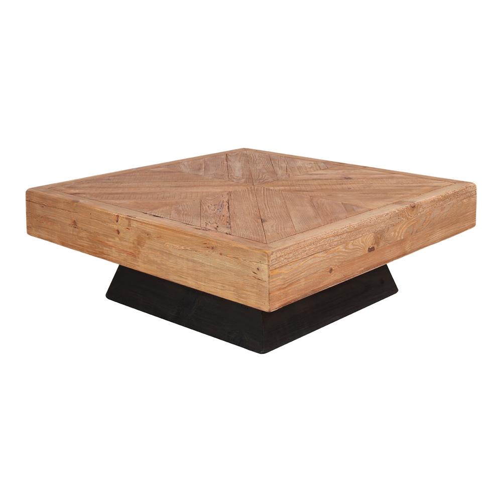 Marius coffee table made of recycled pinewood. Pyramid-shaped wooden frame with black paint finishing.