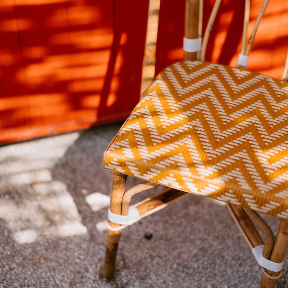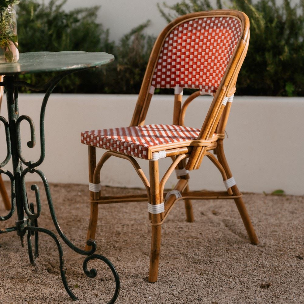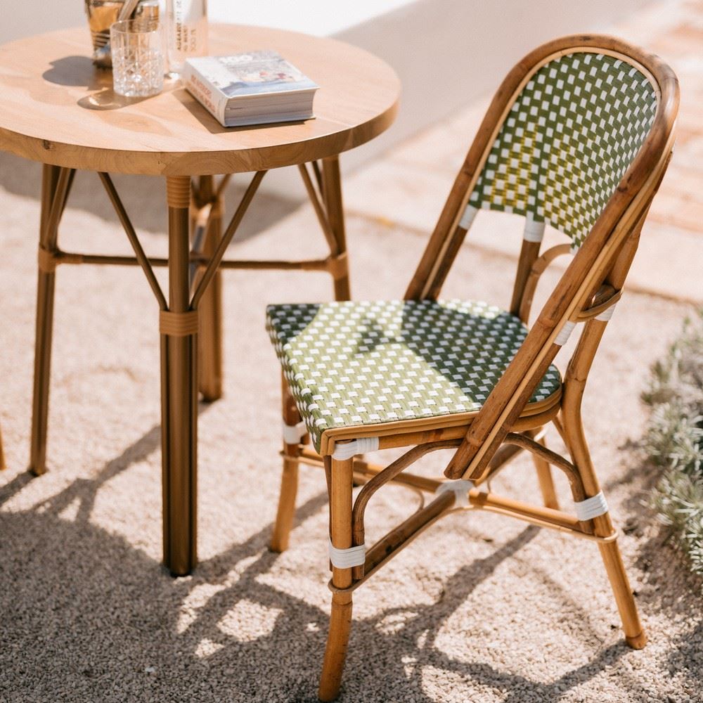 One of the trends of the season is our Matignon rattan chair, made from natural rattan and synthetic pith. Rattan is about to make its way into every home, and it’s no surprise: its solid weave lends texture to the look and has been used in some of the most iconic designs in decorating history. In this rattan chair, synthetic rattan brings a more contemporary feel than traditional rattan and is easy to maintain. Perfect for any interior. Mix it with other Bistro style furniture for the perfect combination. Its unique design is a recipe for an original piece that will add a Parisian touch to your space.