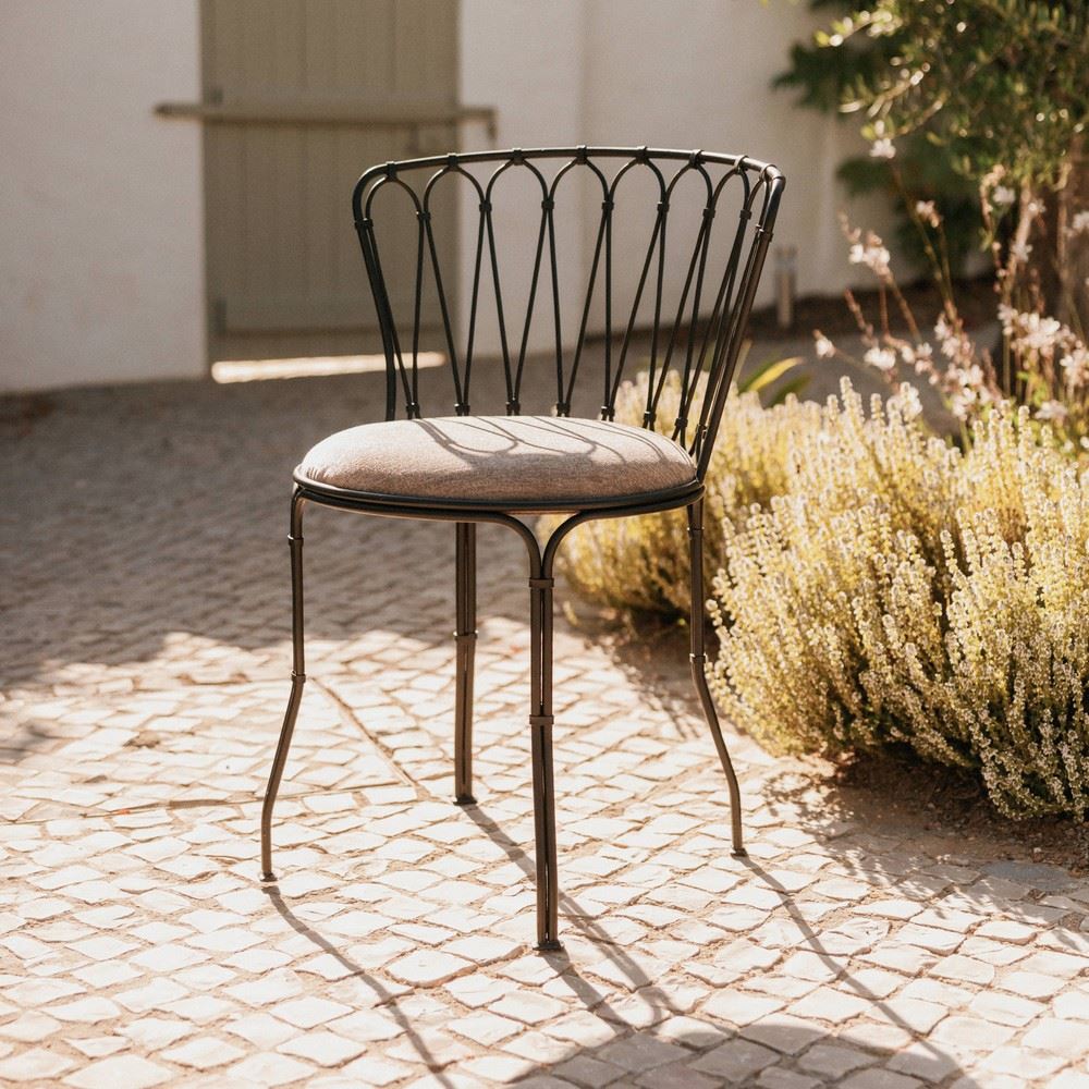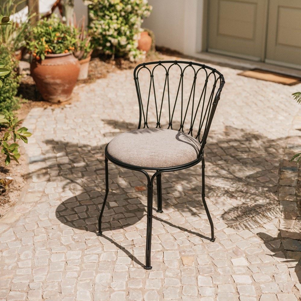 The Maylen upholstered metal chair, vintage style, is ideal for decorating a room where this style predominates. Very striking for its sinuous shapes in the back, has a seat upholstered in fabric that brings elegance and comfort. This metal chair combines great with natural fibers or wood and is perfect for both home and hospitality. A functional and easy to maintain chair.