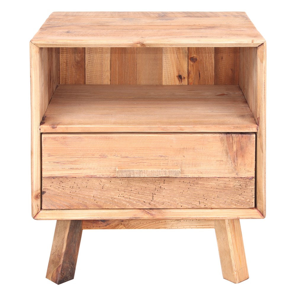 Wooden night stand Rustic style, made of recycled pinewood with 1 drawer.