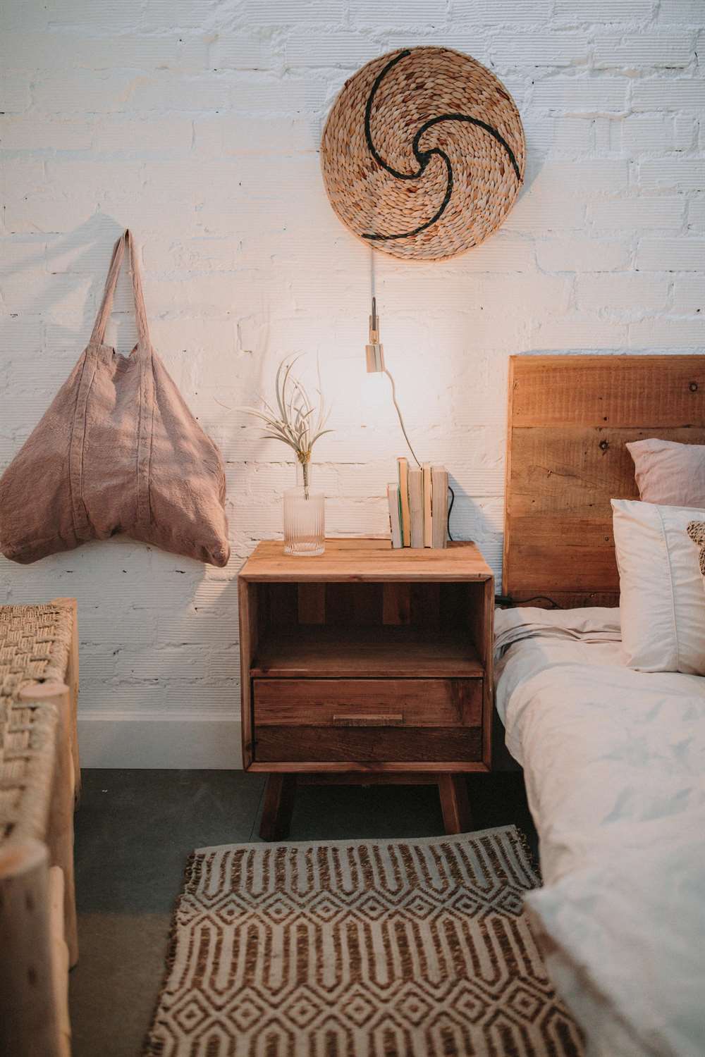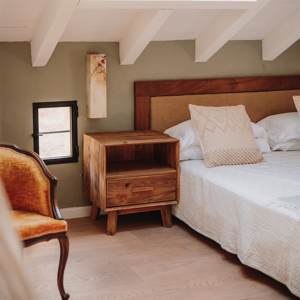 The Mendoza wooden night stand follows the Rustic style. It’s made of recycled pinewood, and has 1 drawer.