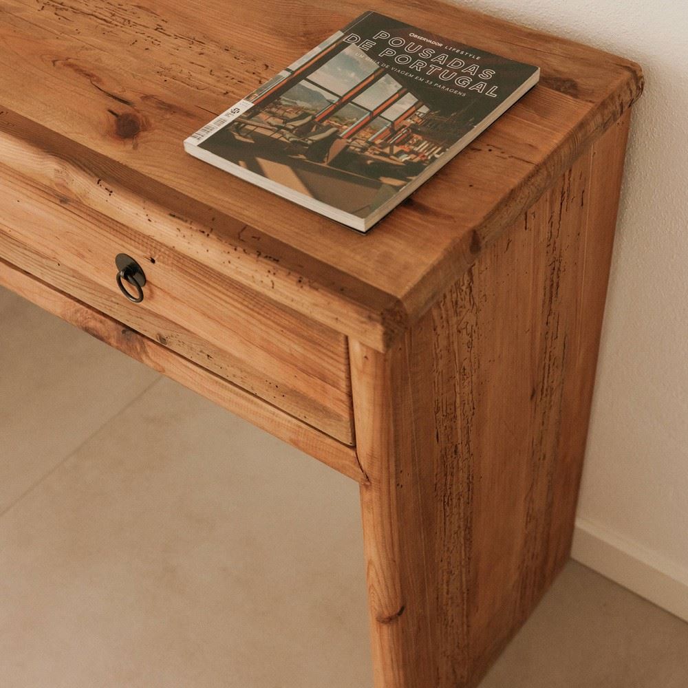 The Miriam wooden sideboard is a handmade piece of furniture made of recycled pinewood. It has plenty of storage space due to its 3 front drawers. Its rustic look will provide a welcoming touch to the hall of your house.