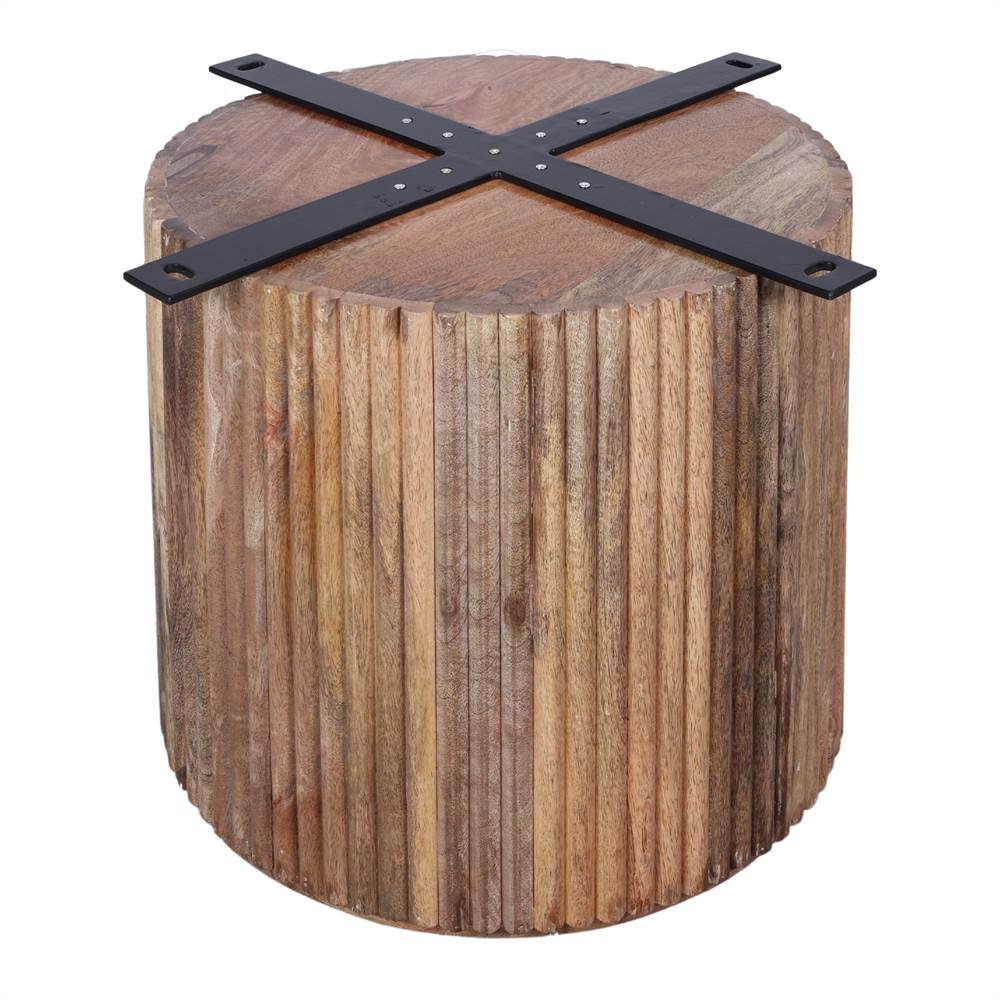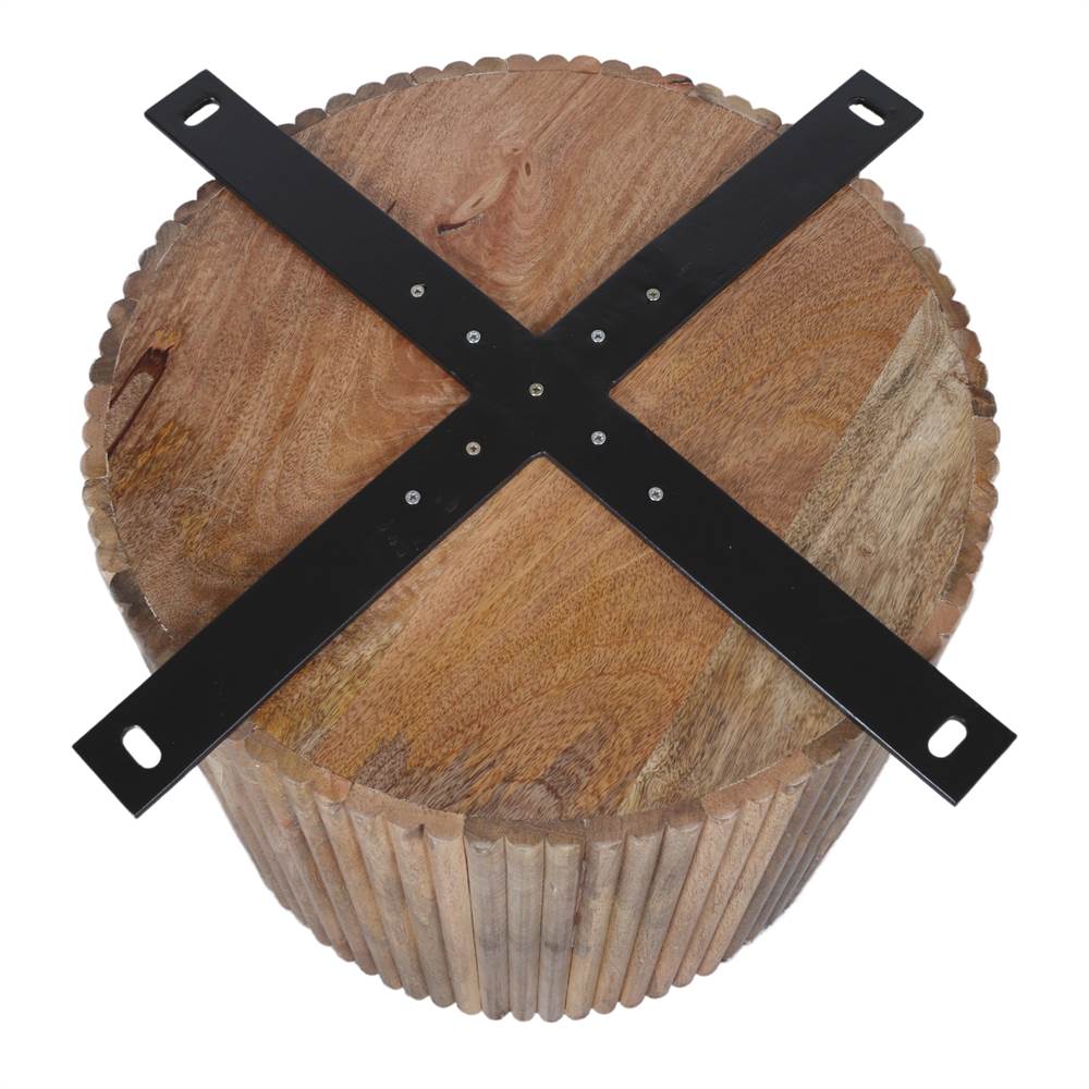 Made of acacia wood with cylindrical base of wood sticks.