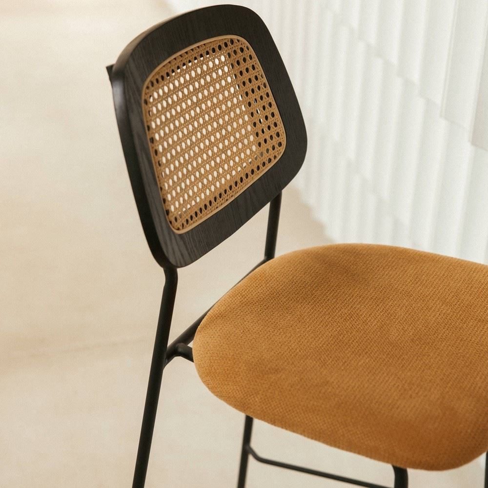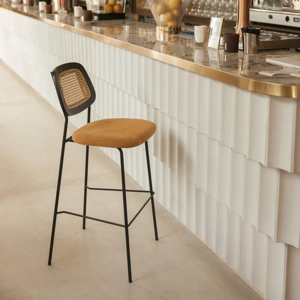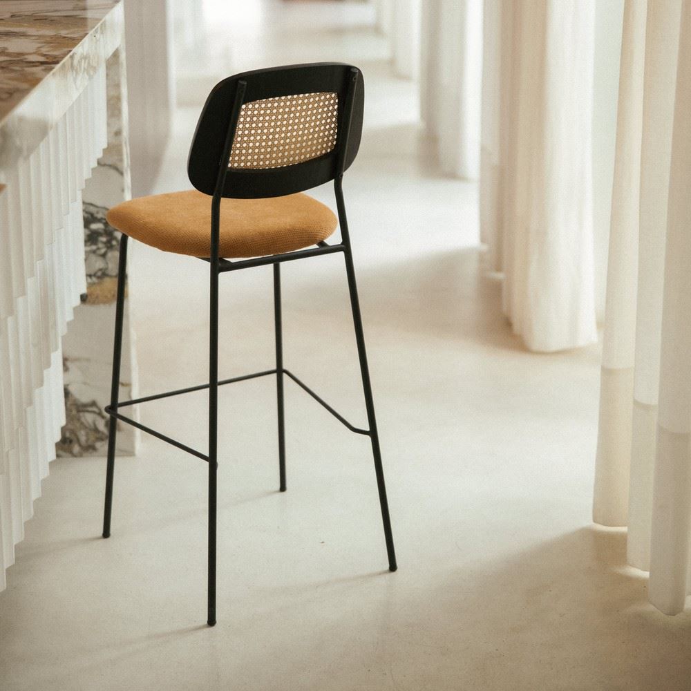 Originality and comfort are at the heart of the design of the Cardinal upholstered high stool. Its textile upholstery will give a soft touch and a comfortable seat as well as a cozy and warm look to your interior. Its wood and mesh backrest give it an organic touch. Padded with foam, this high stool is ultra comfortable, making it a perfect stool. To make this type of stool stand out, combine it with a high table, for example.