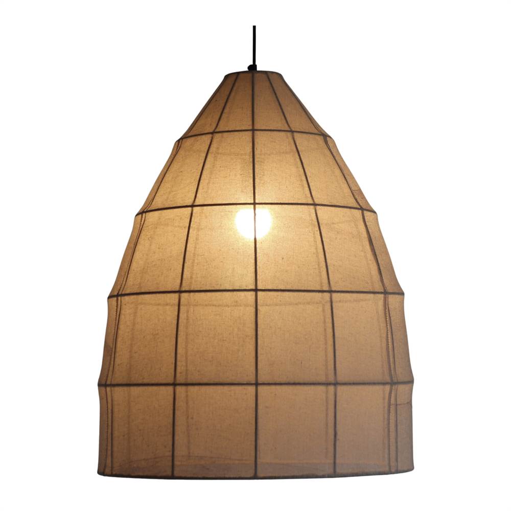 Namila ceiling lamp, a unique and handcrafted design that brings warmth and style to any space. Made with a lightweight metal mesh structure and covered with fabric, it combines functionality and aesthetics in a single element. Its bell shape and translucent finish provide soft, enveloping lighting, ideal for living rooms, dining rooms or bedrooms. Perfect for bohemian, rustic, Scandinavian or Japandi decorative styles, this lamp stands out for its versatility and timeless elegance. Includes adjustable cable to adapt the height to your needs. Give your home a cozy and natural touch with the Namila ceiling lamp.