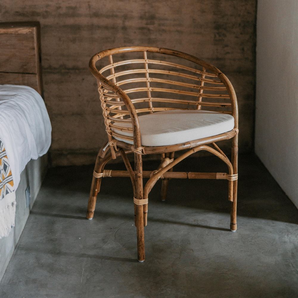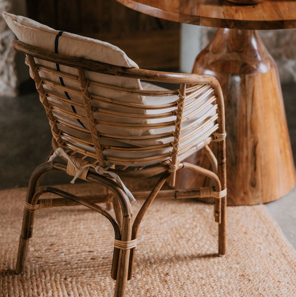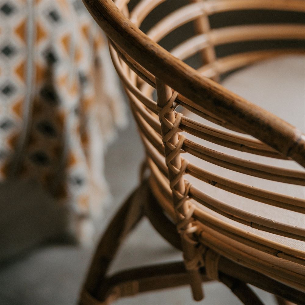 Sit on one og the biggest trends of this season with our Nikita rattan chair. Rattan is now arriving to our indoor spaces and that’s not a surprise: this solid fabric gives texture to the chair’s look, and it’s been used on several iconic designs of the history of decoration. The combination of steel frame and rattan, its comfortable curves and its unique design are the perfect recipe to an original piece of furniture that will give your dining room a nordic look.